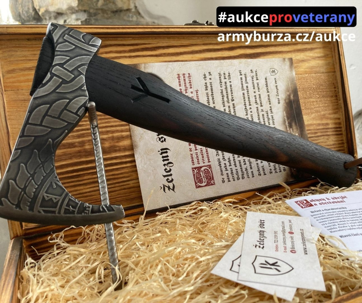 “Pro dobročinnou aukci jsem vyrobil dvě sekery se stylizovanými vikingskými motivy, dnes velice populárními s potenciálem přitáhnout zájem těch, kteří mají obecně kladný vztah k válečníkům a bojovníkům a mohli by díky tomuto přirozenému respektu chtít pomoci našim kamarádům prožívajícím těžké a složité životní situace.