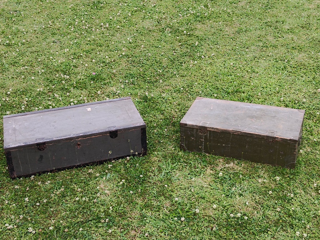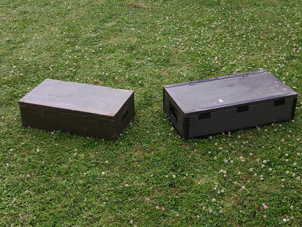 2 bedny Wehrmacht original dobrý stav, velké Rozměry větší 80x40 cm a menší 65 x 35 cm Odber osobne a pouze komplet ( Ostrava)