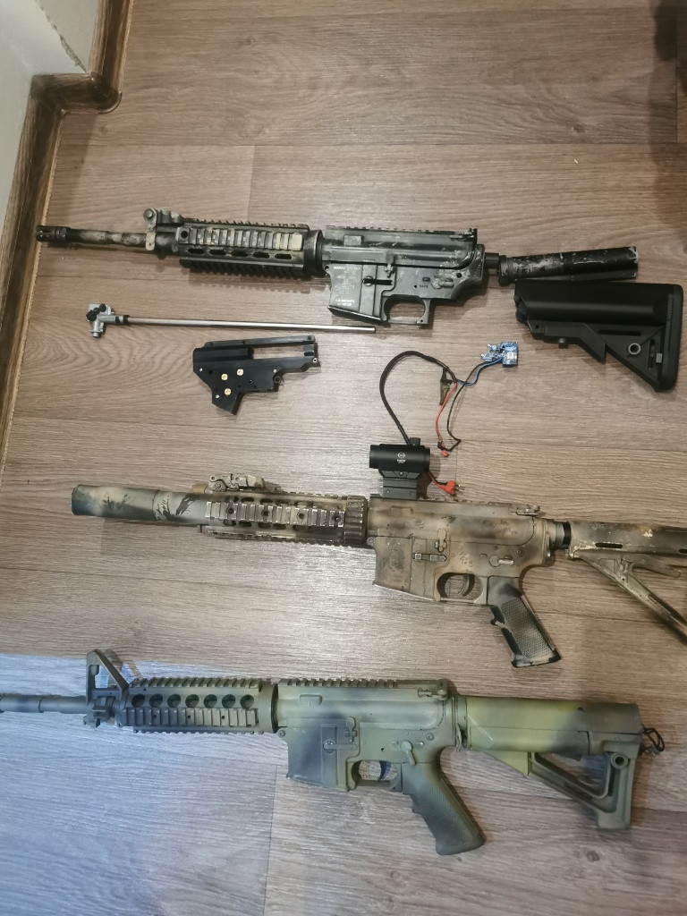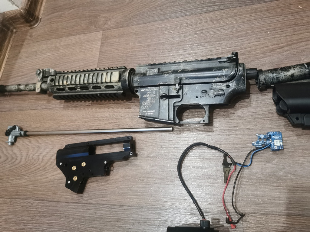 Zelená custom m4- PJ tělo s výměnou pružiny, vevnitř specna (Orion mech) motor, hop, hlaveň taky ze specny. 1.4J je to vypodlozene, dorazenej hop.. Klasika. 2500 dohoda Camo mk18 - PJ bez výměny pružiny, classic army mechabox, sestavené technikem jako záložní kver. 1.7J. Zátěžový motor, nějaká přesná hlaveň, už si nepamatuju.. Zbraň jako celek pevná jako skála, kolimator + peq po dohodě. 2500 Tělo aimtop - dohoda Retro arms v2 bez qsc 1800 + díly k tomu (retro pist, custom vzduch atd) - jde poskládat do toto aimtop těla, vše sedí krásně Leviathan optical + speed trigger - 2000kc (spínání od 0,13mm) hair trigger bláznivý Zátěžové motory, drobné díly cl, cokoliv po dohodě přidám Možná výměna za AK nebo nějaká ruská věc na LARP