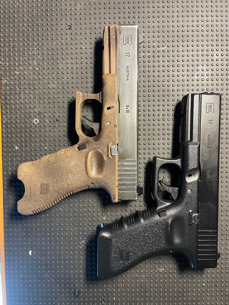 Prodám 2x Tokyo Marui Glock 17. 4x zásobník. Jeden origo stav, mimo ml gumy. Druhý full up (rám od guarderu, hliníkový závěr, pružinky atd.) Vrátil jsem se zpět k hi-cape. Prodám jako celek. Případně vyměním za AK platformu