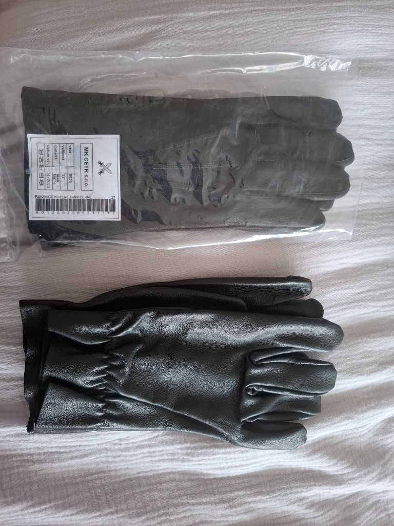 2x Kožené černé rukavice + 1x pletené rukavice zelené