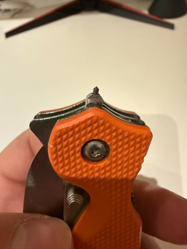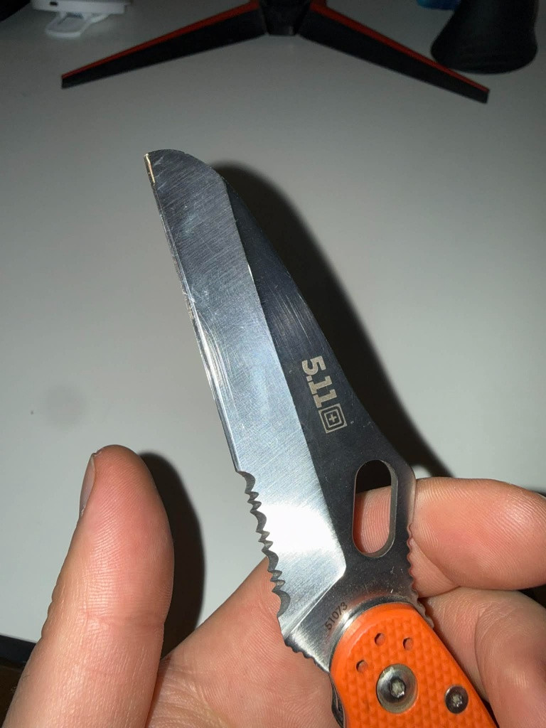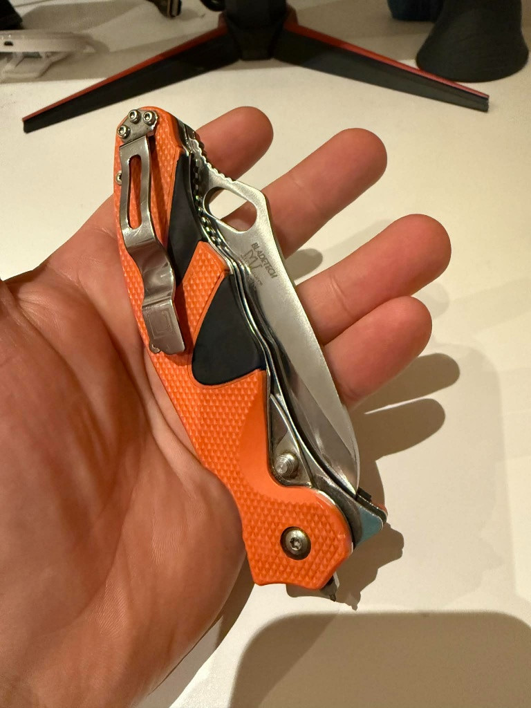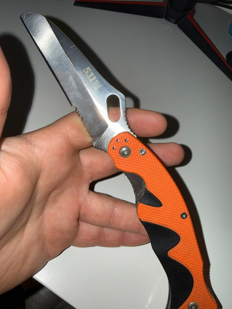 Kupován 2017 z Kerberos Tactical za 2500, od té doby má za sebou dost amatérské broušení a intenzivní používání. čepel AUS 8, řezač pásů, rozbíječ skla. Již se neprodává.