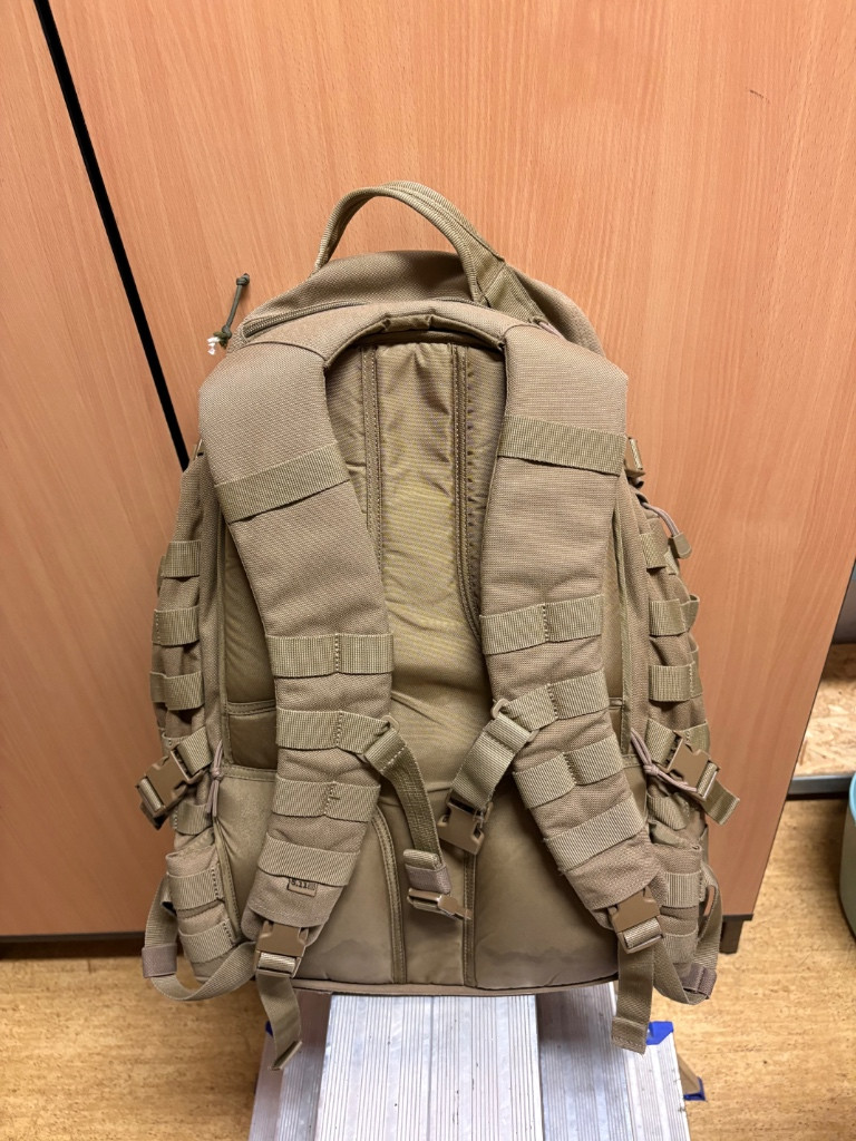 Nepoškozený, po vyprání bude venek jako nový, bězné zašpiněný od prachu od používání (vnitřek je čistý). Přesky a popruhy kompletní.
