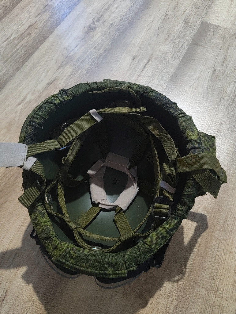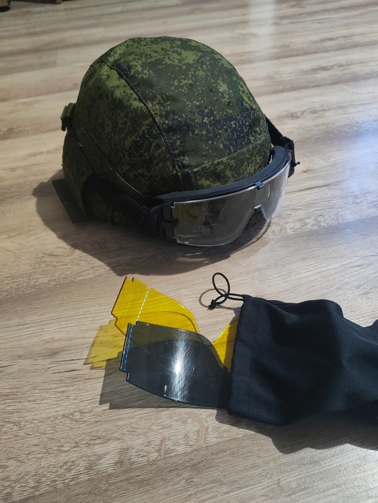 Replika Ruské 6B47 helmy, nepoškozená několikrát použitá na airsoft, součástí balení je i potah na helmu, kryt brýlí, samotné ATF brýle na airsoft + 3 typy sklíček. Helma má ris lištu pro baterku nebo jiné vybavení (viz foto) a vepředu mount na go- pro/nvg setup. Vše je sladěné do ruského EMR vzoru cifra digital, pokud máte zájem nebo dotazy, kontaktujte na e-mail, ideálně však na WhatsApp pod číslem 775 508 538