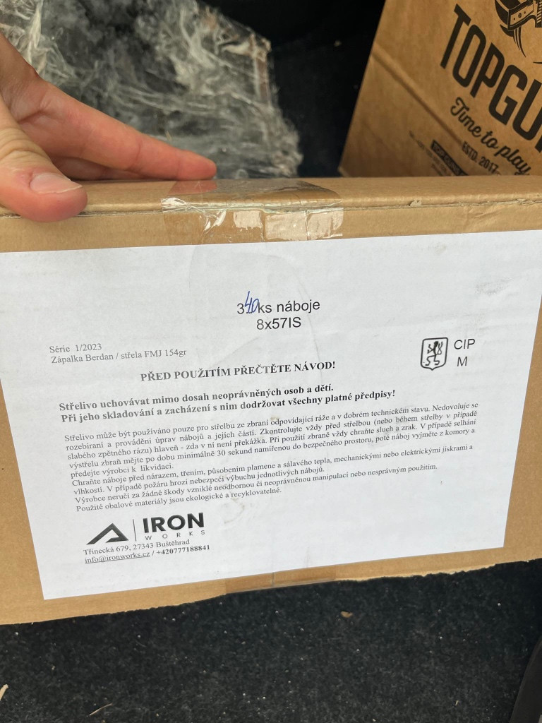 Prodám munici 330ks 8x57 IS FMJ, vojenské střelivo předělané na civilní. V týdnu od 8.7. mohu zavést osobně Beroun - Praha - Brno - Zlín. Použito pár kusů na test balistické ochrany: možno vidět na telegram kanálu: t.me/balisticka Prodávám jako celek. Potřeba ZP