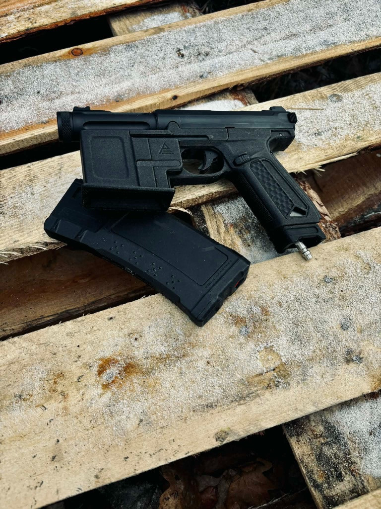 custom M4 lower tištěný z industriálního PA12CF15 (nylon + 15% carbon fiber) – vysokopevnostní technický materiál. Kompatibilní s M4 AEG zásobníky. HPA QD spojka v zásobníku a adaptér pro připadne předělání dalšího zásobníku poháněného greengasem. Zbraň je přímo použitelná na HPA - (stačí hadice, regulátor a láhev). Stock AAP-01 upper (základní verze) Zbraň posílám složenou jako M4 lower + AAP-01 upper. Součástí balení jsou také původní díly AAP-01 loweru, takže je možné ji kdykoli vrátit do původního stavu. Prosím, kontaktujte mě přednostně e-mailem.