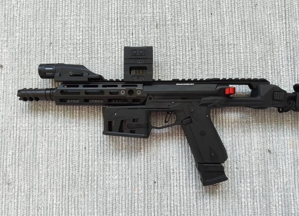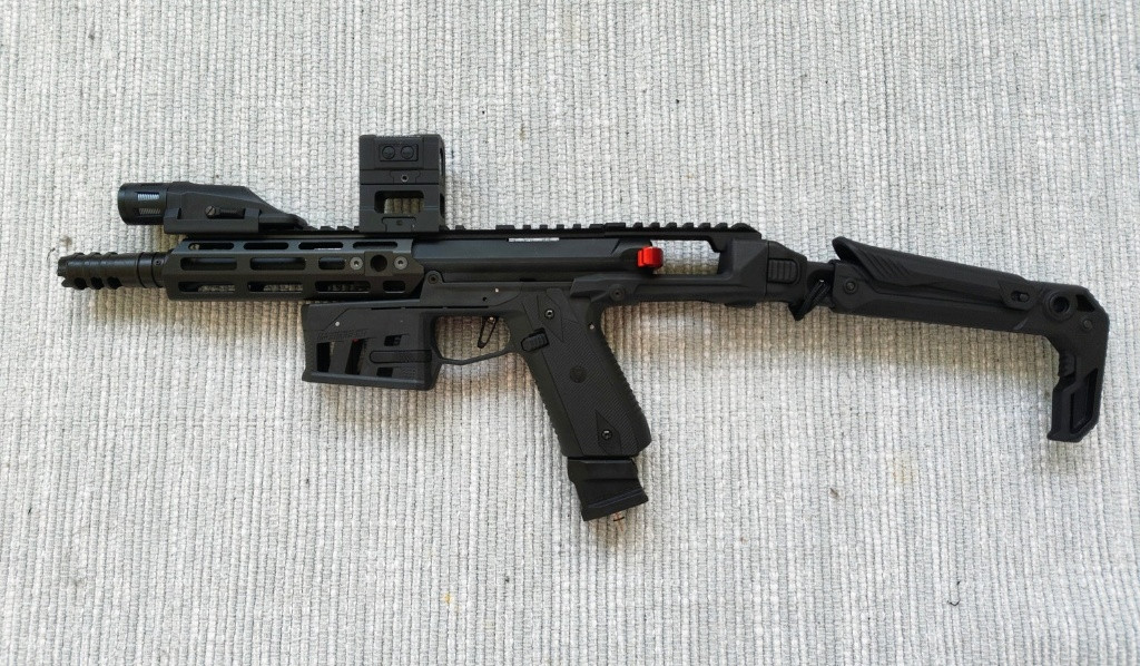 Prodám AAP01 předělanou na "M4". Celý set obsahuje APP01, 200mm hlaveň Action Army, Loki komoru, Flamingo 60° gumku, origo bolt s tryskou CTM (s npasem pro regulaci výkonu), pružiny v boltu jsou 200% CTM, dále ocelové kladívko action army a diskonektor. Dále CTM maximus M4 HPA kit (zbraň stále může používat klasické plynové zásobníky) a action army předpažbí a pažba, vector optics kolimátor a svítilna. K setu přidám další action army komoru a CTM ultra light bolt. Při rychlém jednání sleva. Kit je dělán na 36-40 kule, doporučuji dát měkčí gumku pro lehší kule.