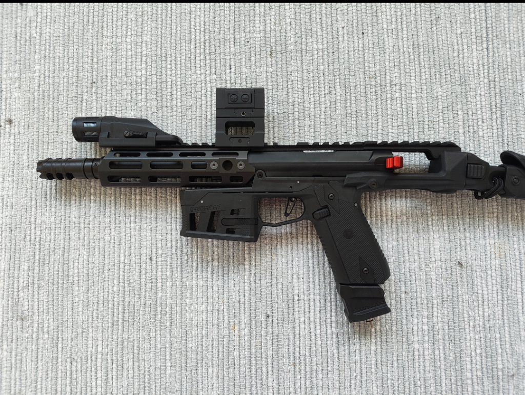 Prodám APP01 s M4 maximus hpa kitem. Hlaveň 200mm 6.03, LOKI komora (aktuálně je 60° flamingo guma, takže kule 36-40, pro lehčí kule je třeba vzít 50° gumku) Action army předpažbá a cnější hlaveň, ocelový diskonektor a kladívko, CTM npas (výkon se dá regulovat), CTM tryska, CTM zesílené vratné pružinky. Action army natahovací páka a sklopná pažba. K pistoli DÁM použitý lehký bolt od CTM a Action army komoru. Prodávám bez svítilny a kolimu.