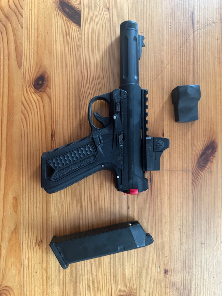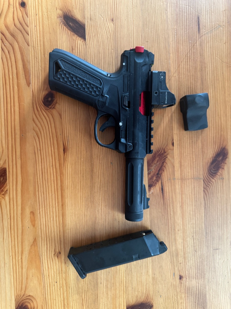 Zdravím chtěl bych prodat AAP01. Na zbrani je hliníkový závěr lepší gumička tryska, silnější pružinka. Dále je tam celý je tam celý cnc vnitřek. Prosim psat SMS