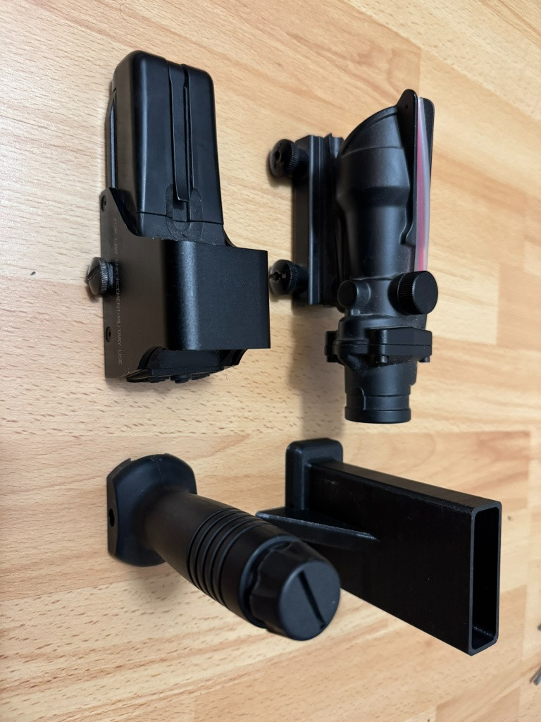 Prodám: Eotech 552 - 500,-Kč ACOG 4x32 - 1000,-Kč Pažba M16 G&P - 400,-Kč Transportní ucho na RIS M16 - 200,-Kč Vertikální ručka - 100,-Kč Popruh CA M16 - 200,- Stojánek AR 3D tisk - 100,-Kč Osobní odběr Brno / Zásilkovna