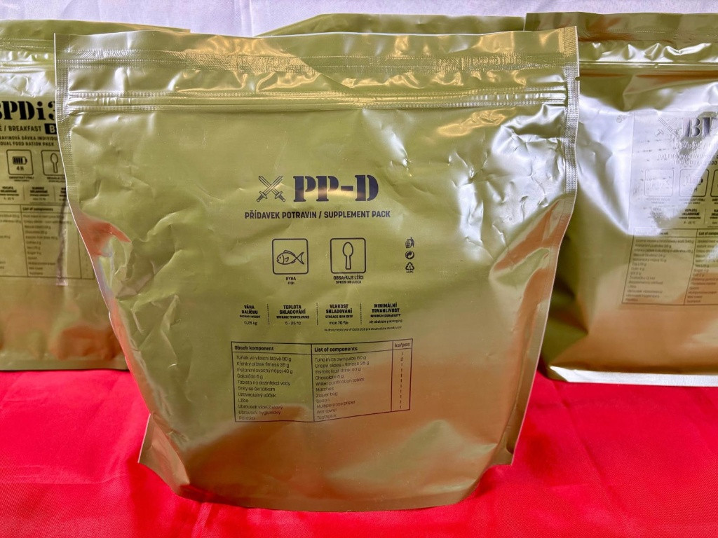 | Lotyšská vojenská potravinová dávka MRE 12h Menu 4 Hrachová s uzeným |