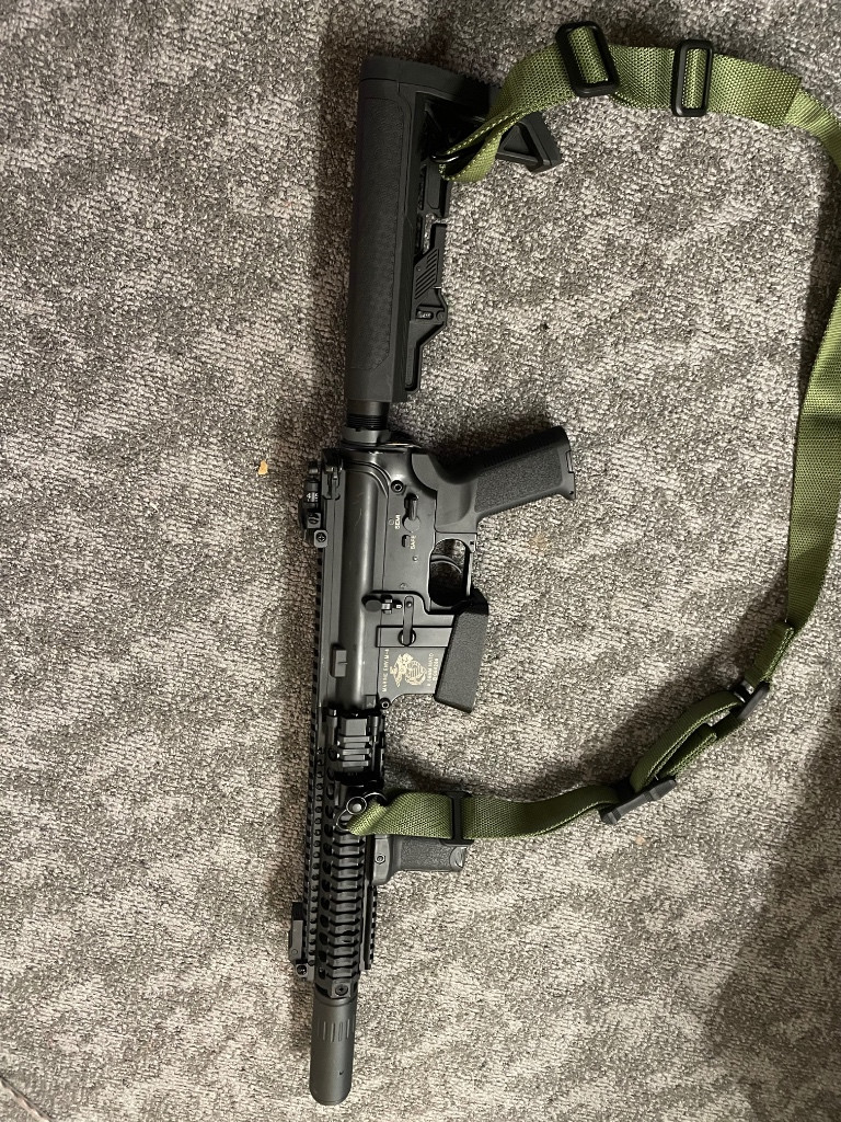 Prodám specnu one, dnes se už hůře shání, je v pekném stavu, pouze na těle pár lehkých odřenin, je v ní procesorovka kestrel V2 basic, nový vysokozátěžový motor specna, hlava válce a tryska je mosaz (originál), hlava pístu tecaform od airsoftparts, píst originál specna polykarbonát s jedním ocelovým zubem, hopkomora původní, vnitřní hlaveň původní, hopguma 4uantum friction, pružina M125, střílí spolehlivě a přesně, na zbrani ocelový kompenzátor s tlumičem, taktická ručka kopie BCM, 3D tištěné rozšíření šachty, výsuvná pažba z novějších modelů specna, pažbička nová, ergonomická, také specna, na zbrani sklopná mířidla, odolný robustní QD popruh, ke zbrani dám 7,4V lipolku, podmínkou je osobní převzetí olomoucký kraj, pokud se vám fotky nezobrazí, zašlu je mailem