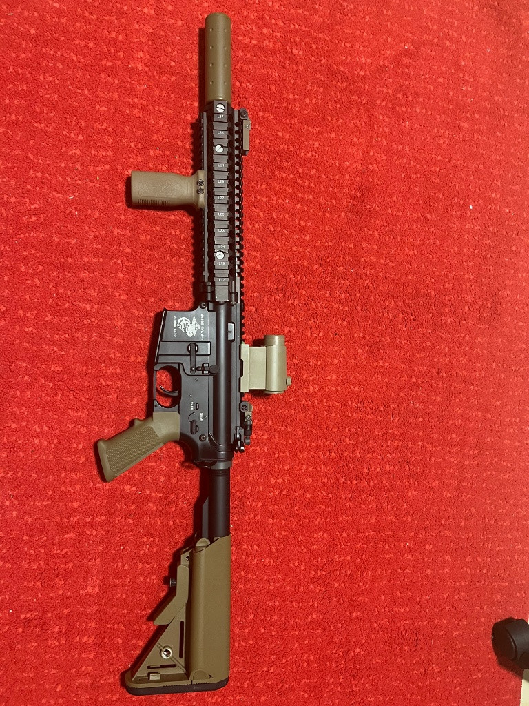 Dobrý den, chtěl bych prodat vše co je na fotce. Dříve blbla, nestřílela pořádně a někdy vystřelila dvě kuličky. Zbraň je ještě v záruce, do 14.5.2026. (Konkrétní model: EC603, zakoupena na airsoftpro). Při rychlém jednání jsem ochoten jít s cenou dolu. Pište prosím na e-mail/SMS. Preferuji zásilkovnu(poštovné platíte vy) nebo osobní vyzvednutí v Karlových Varech a okolí.
