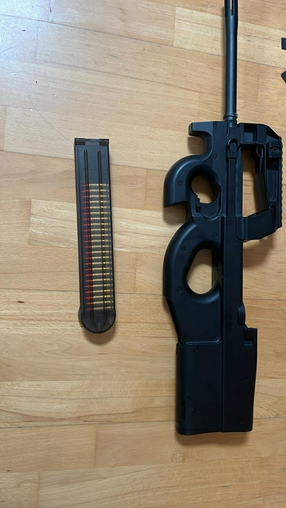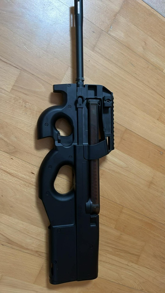 Nabízím plně funkční airsoftovou repliku zbraně P90. Zbraň nemá nabíječku.