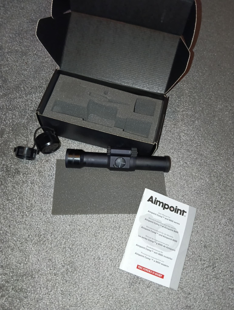 Dobrý den ,prodávám tento red dot sight,více polohová regulace , ke kolimátoru origo balení aimpoint a origo aimpoint krytky. orig. výrobní číslo : 4132015