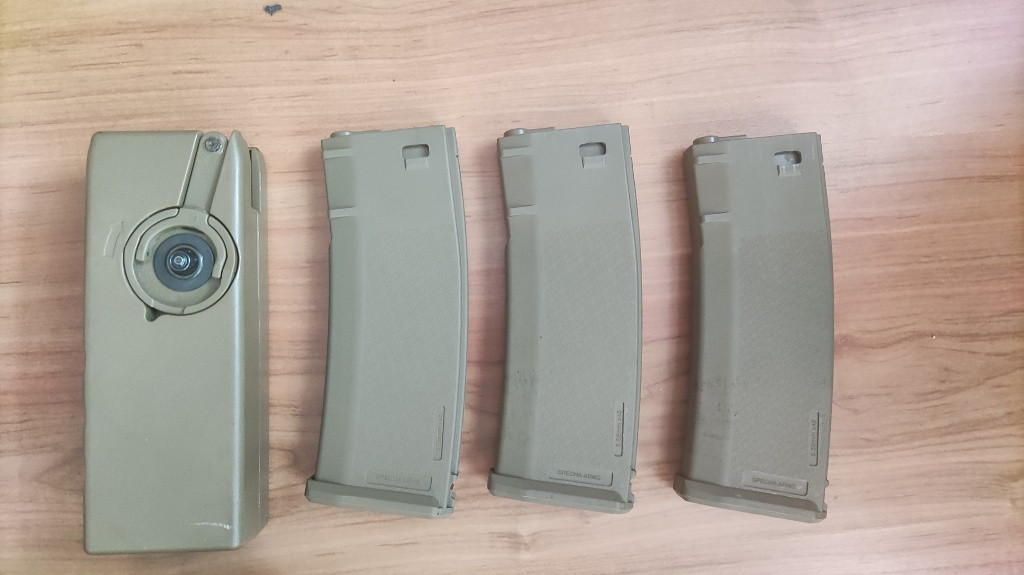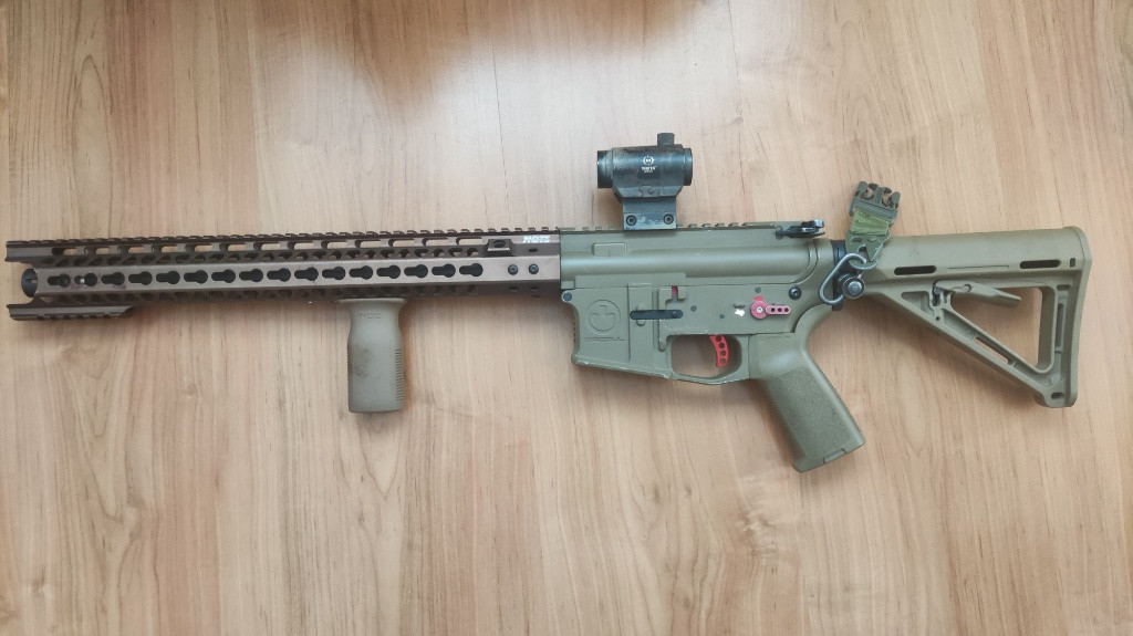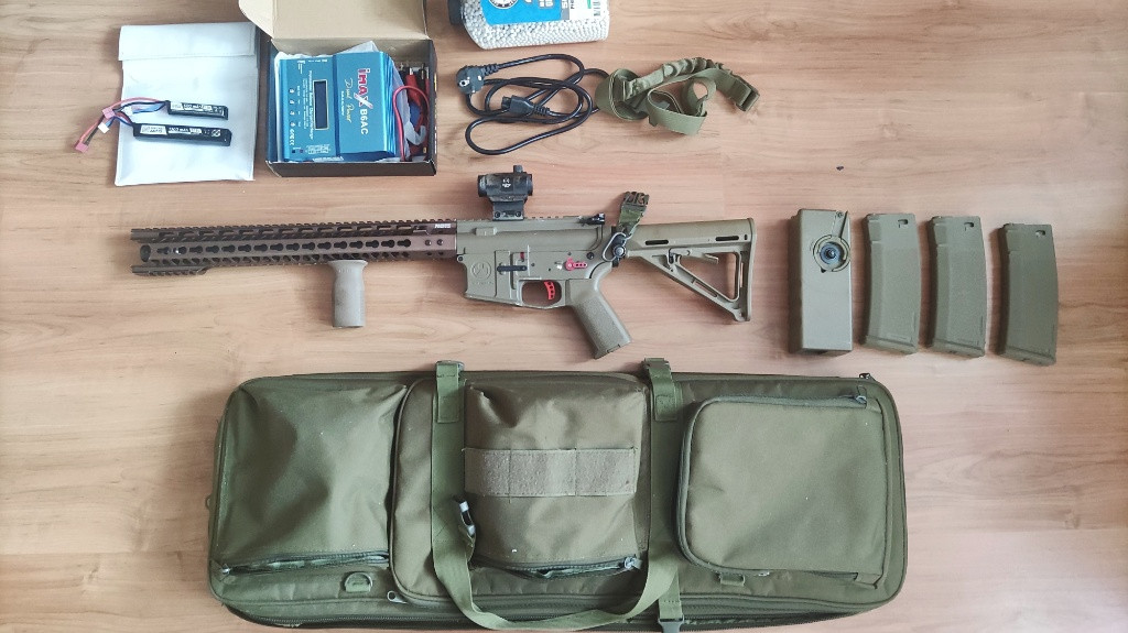 Zdravím, rád bych prodal svou zbraň a příslušenství, jelikož za poslední rok jsme s ní byl na akci asi dvakrát a přijde mi škoda, aby jen ležela doma pod postelí. Zbraň byla celá sestavená na zakázku a jsem již její druhý majitel. Tělo je magpul, předpažbí mots. Zbraň je osazená kolimátorem T1 a ručkou. V servise u airharda jsem na ní zaktualizoval elektroniku a přidal procesorovku od leviathanu. Taktéž se minulý rok dával nový motor (asg motor boost -3000). Zbraň je naladěná na 1.7j. Dále ke zbrani přidám : tašku ,nabíječku IMAX b6ac ,dvě baterky 11.1v 1300mAh a 600 mAh ,3x tlačný zásobník od specna arms + plnička + kuličky 28g. Není problém se domluvit, potkat se někde v okolí Třebíče či Brna a zbraň odzkoušet a prohlédnout. Také je možné kteroukoliv z nabízených věcí zakoupit samostatně, stačí se ozvat a nějak se domluvíme.
