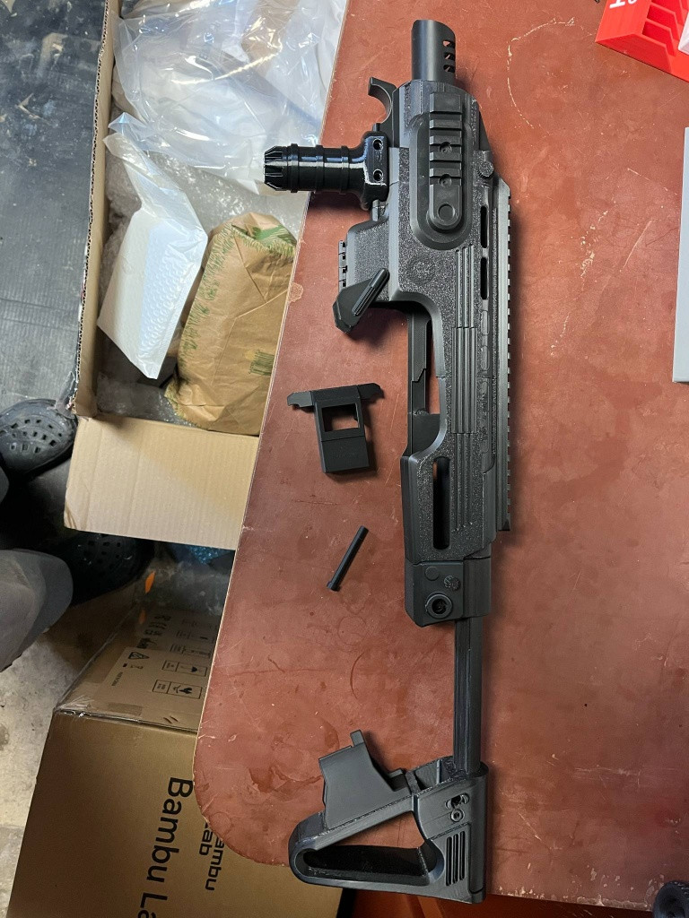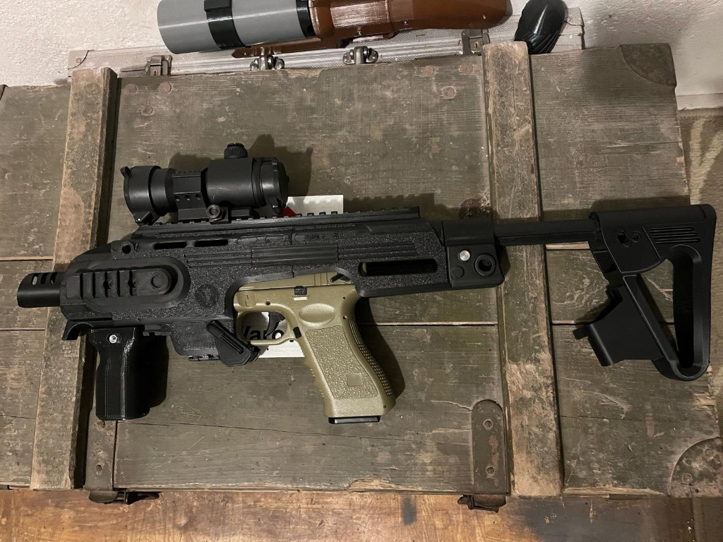 Dobry den, prodavam konverzi na SMG pro Glock 17,18,19 WE. Konverzi jsem vyráběl pomocí 3D tisku. Model jsem zakoupil a upravil. Konverze je stavěna na WE GBB Glock 17,18,19, ale pasuji všechny glocky všech značek. Na fotkách je Cyma AEP Glock. Krasne chodi s WE Glock 18 C. Vytvoří to z vašeho glocka SMG s pohyblivou pakou zavěru :-) Rad odpovím na dotazy. Zasílám zasilkovnou i na dobírku.