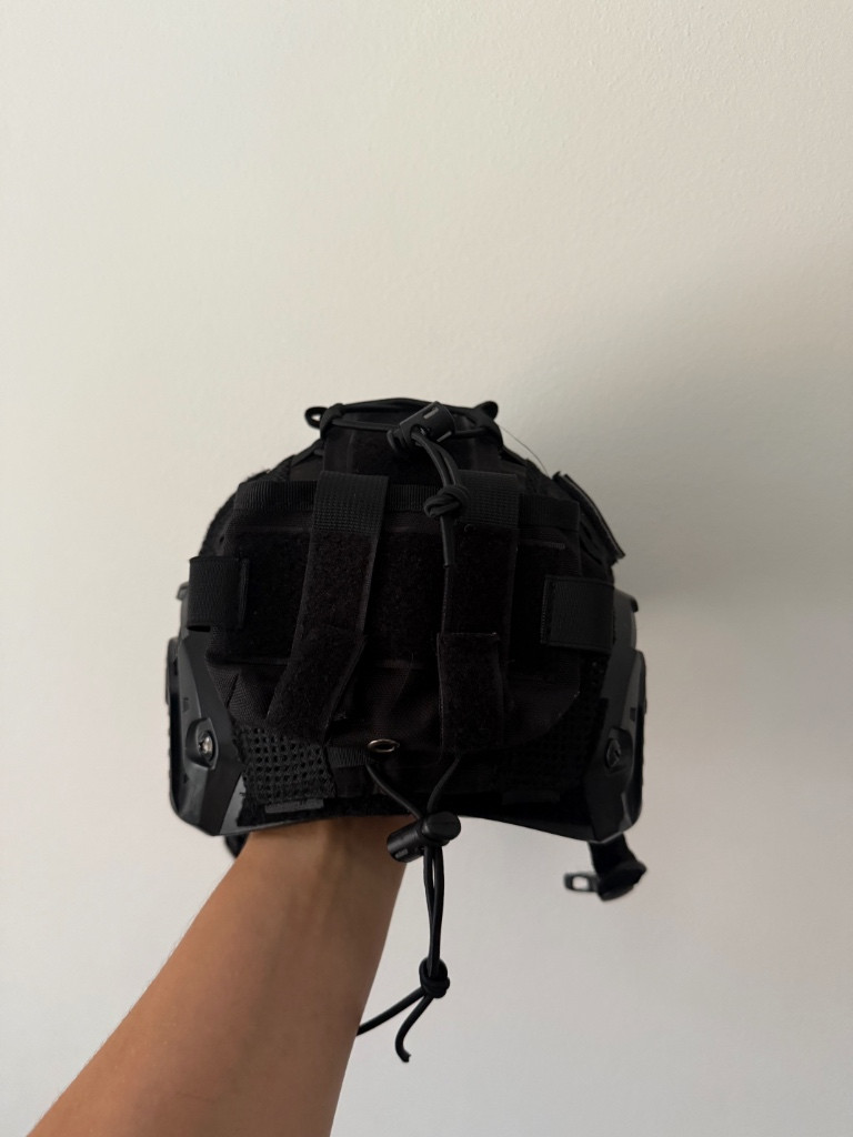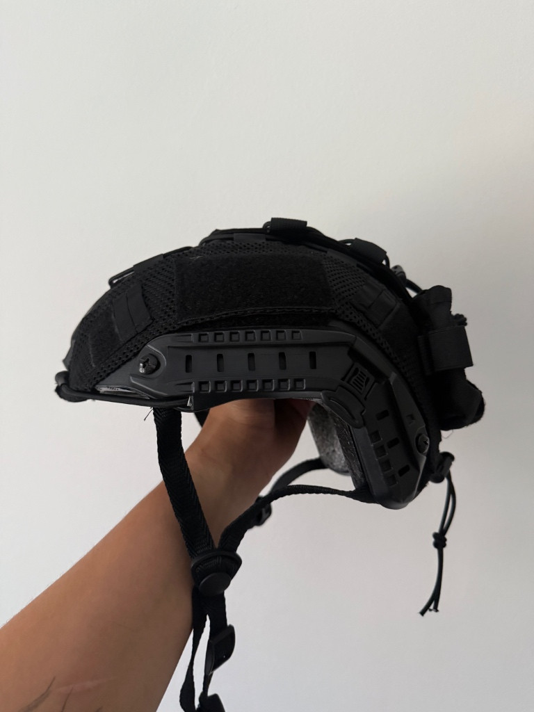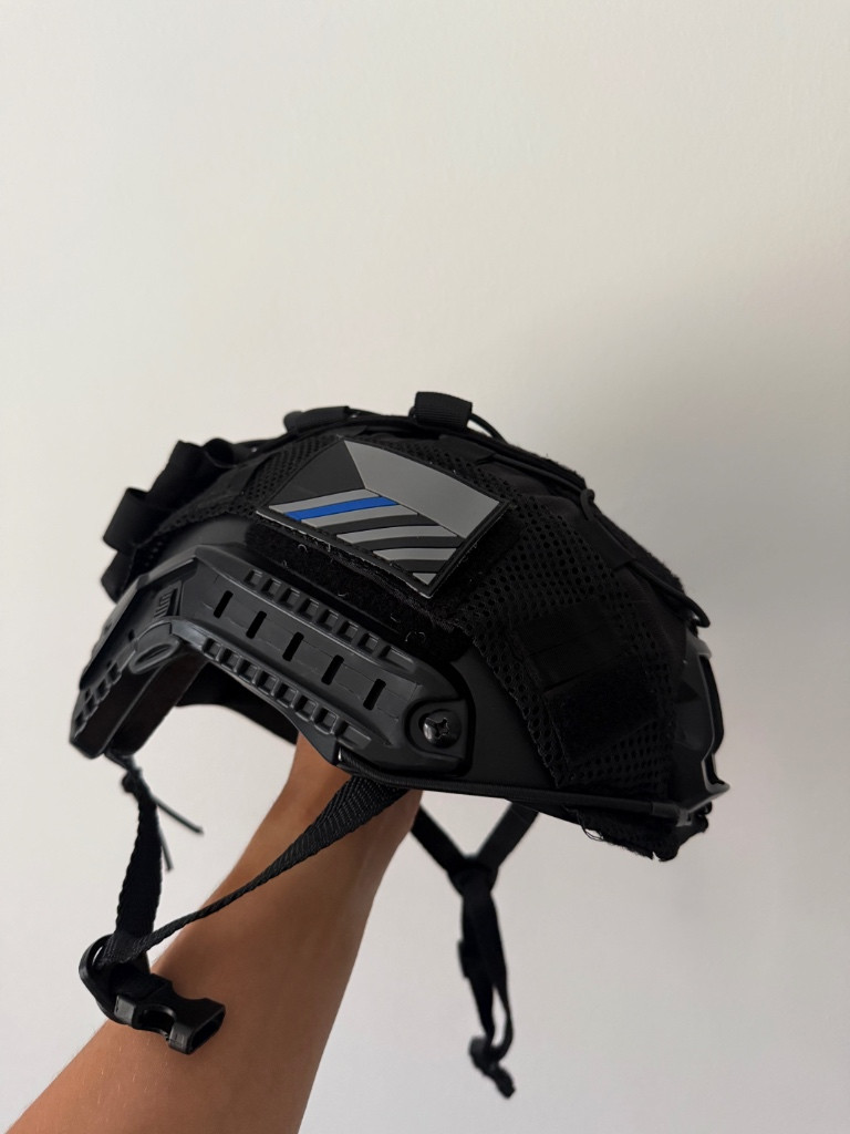 Prodám černou airsoftu helmu, na helmě je nášivka, velikost se dá upravit stahovacím popruhem.