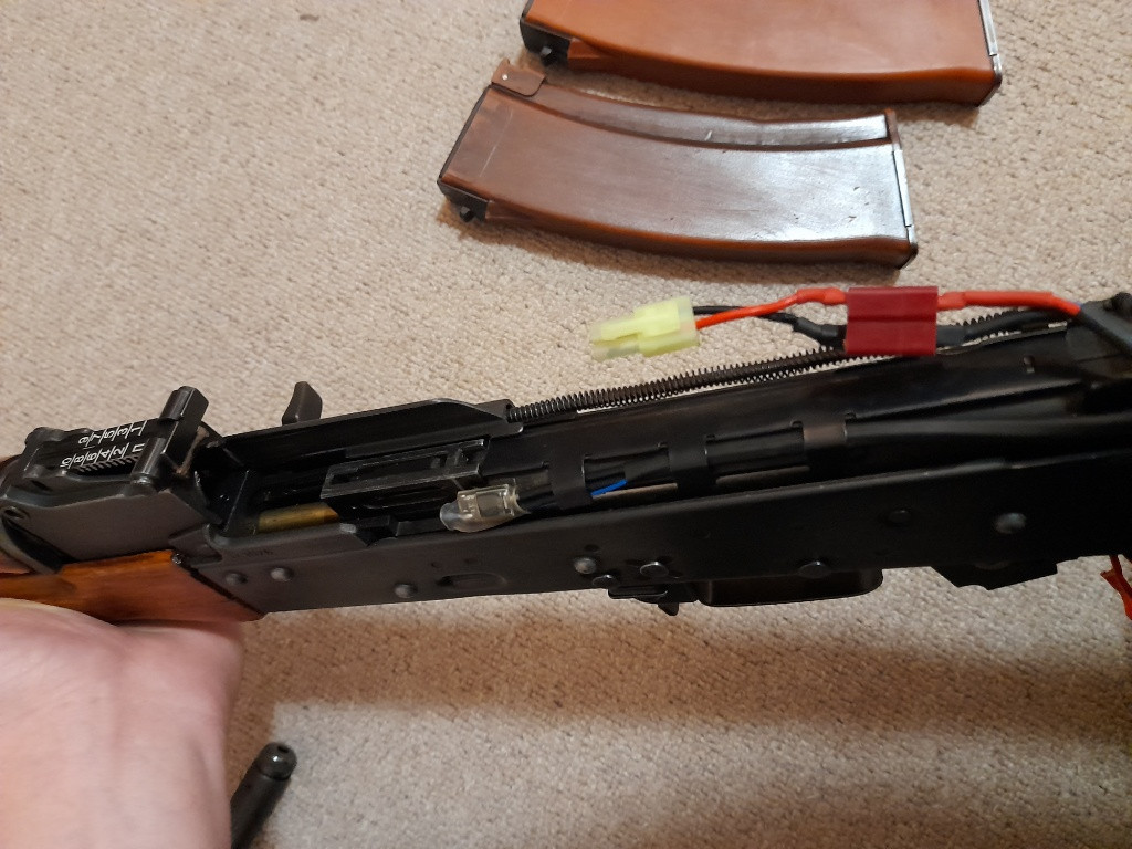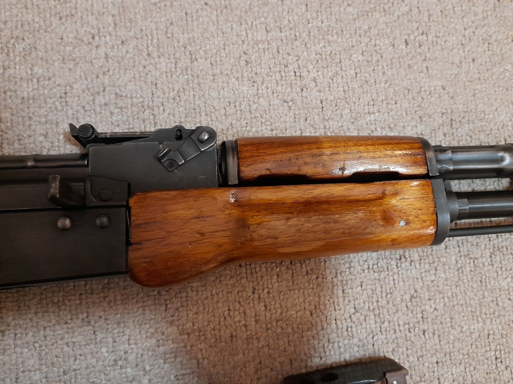 Nabízím k prodeji AK-74 od E&L s krásnou patinou a upraveným pažbením, aby co nejvíce odpovídalo reálné předloze. Původní čínský lak byl vybroušen a celé pažbení bylo natřeno šelakovou politurou, přesně jako u originálních sovětských zbraní. Zbrani chybí motorek s pažbičkou a bude potřeba nejspíše opravit kabeláž, při poslední testovací střelbě (r. 2023) zlobily kontakty. Bohužel se v tom nevyznám a neměl jsem čas řešit servis, takže mi zbraň ležela doma jen jako dekorace. Nicméně krom tohoto je zbraň v pořádku, nikde není nic ulomené a vše je vypodloženo aby se nic nekývalo. Ke zbrani přidám 3 tlačné zásobníky od E&L, také napatinovány, původní sadu čištění a pro zájemce mohu přidat polský bodák, upravený aby šel nasadit na airsoftové AK. Cenu bych si představoval tak 4000,-, ale při rychlém jednání jsem ochoten smlouvat. Výměna možná za E&L AKM nebo AKMS.