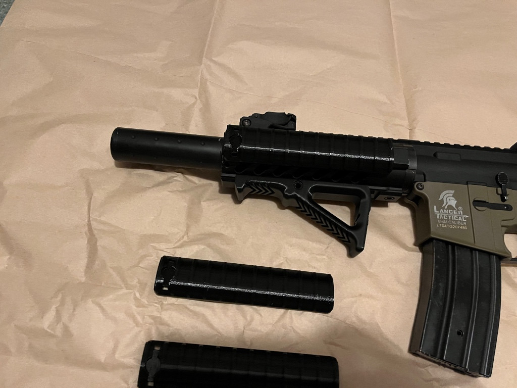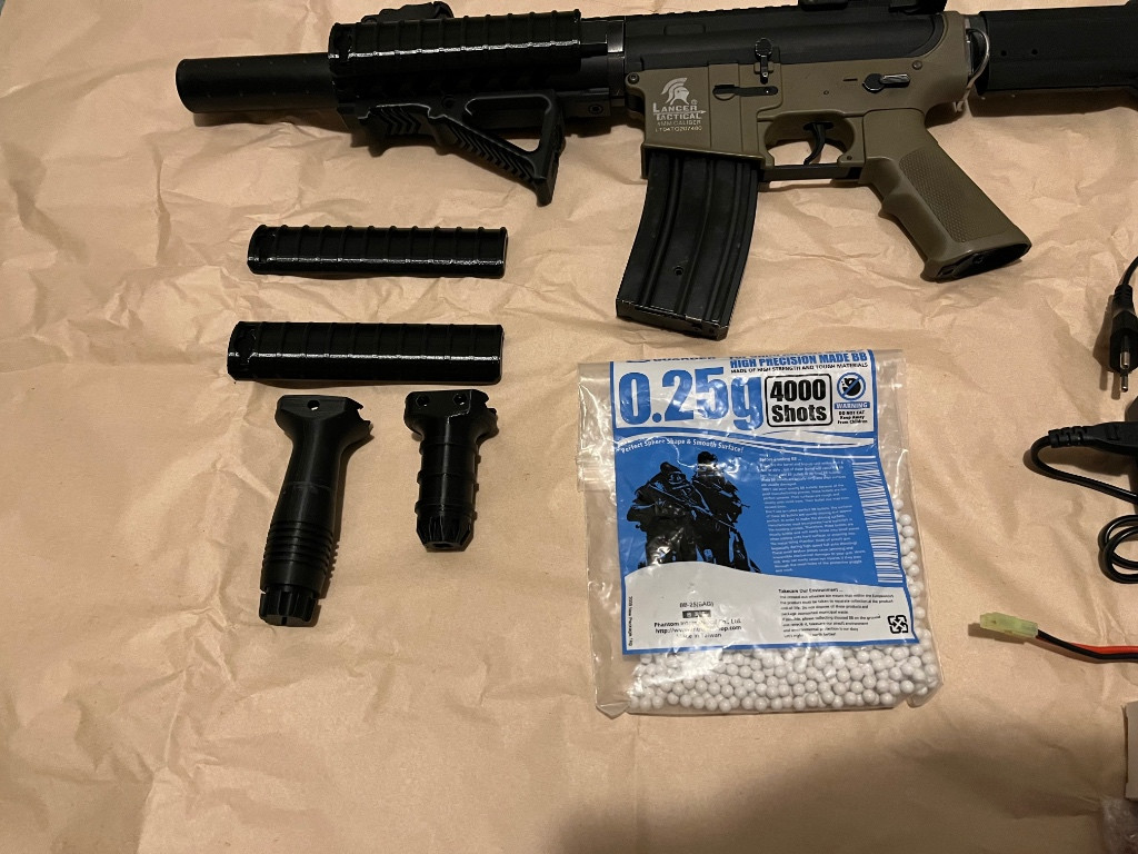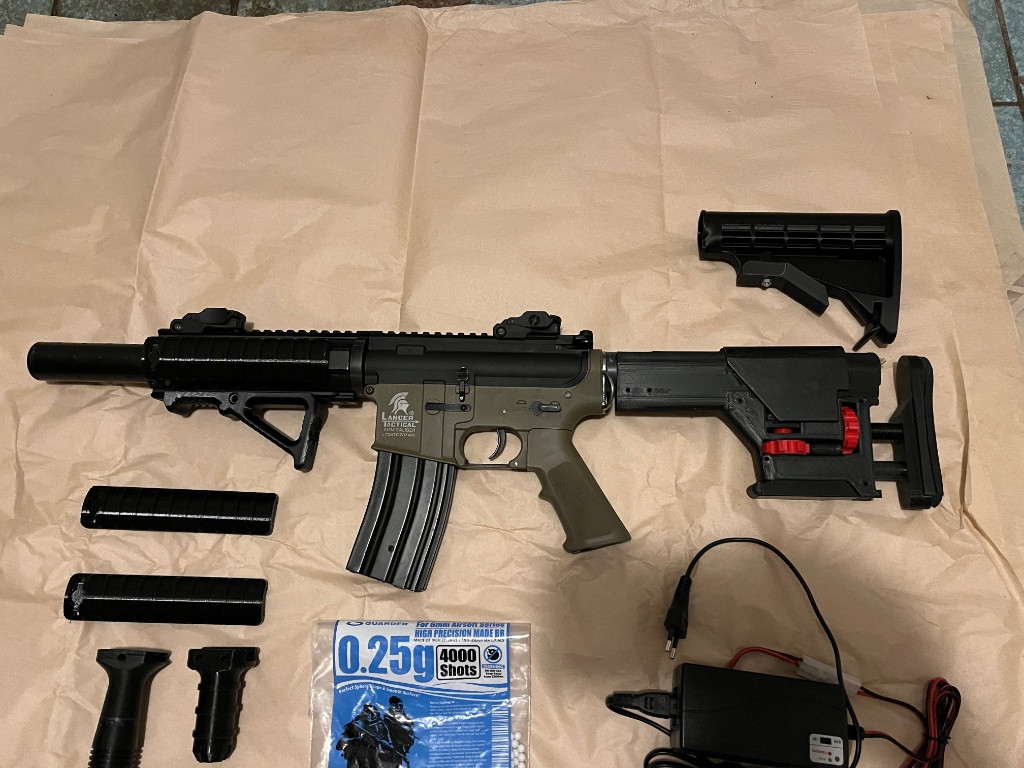 Popis:Airsoft M4 / AR 15, s integrovaným tlumičem