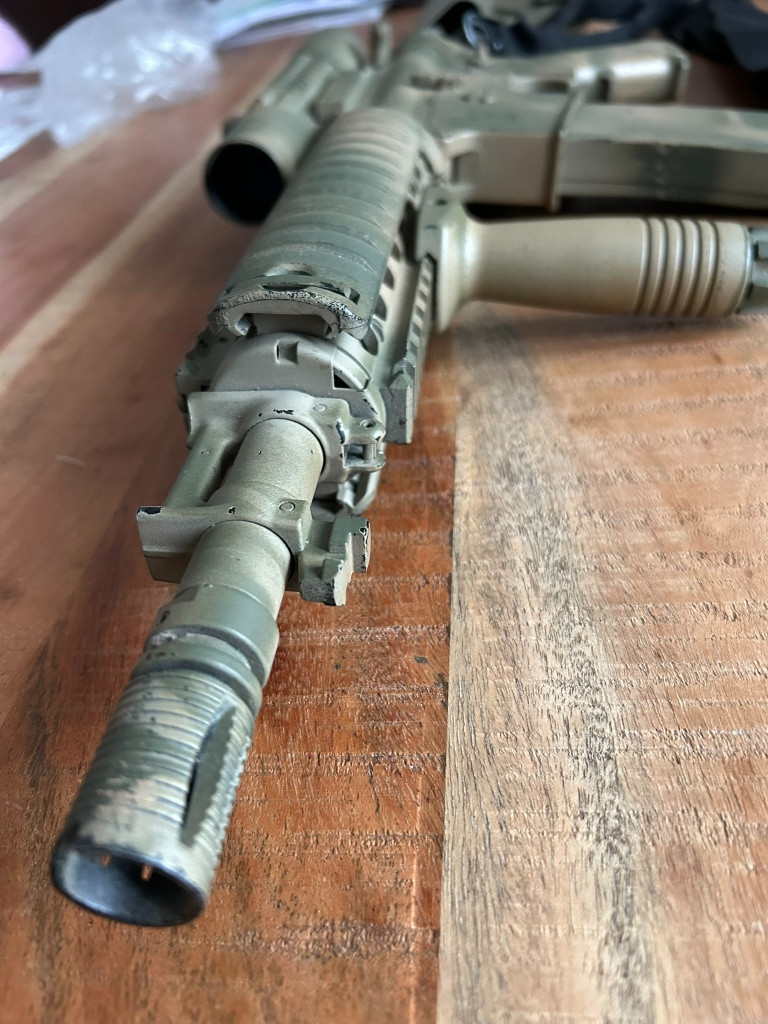 Airsoftová M4 po rodinném příslušníkovi. Není úplně znám výrobce a konfigurace. Tělo vypadá jako PJ, dle příslušníka měla zbraň v minulosti nějaký profi upgrade. Tomu napovídá i polepka na mechaboxu uvnitř. Ke zbrani optika (je v pořádku), dva zásobníky - točáky a popruh. Bez baterky, ve zbrani je Dean T konektor. Vše je pevné, nic se nevyklá, nehýbe, neskřípe. Při osobním odběru samozřejmě možnost vyzkoušet. Cena 3.500,- Brno