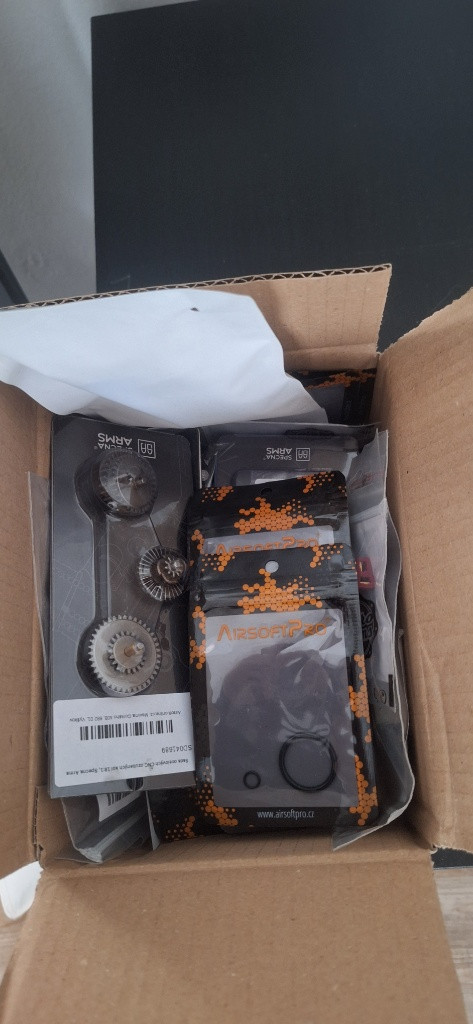 Zdravím , prodám zbytky věcí Motorek dlouhý classic army high torque (nové uhlíky). Motorek krátký specna arms základní zátežový (púvodně m249). Cnc tryska 21.15 . Čep z m249 a&k. Čep v2 qd specna arms. Valec typ 2 specna . Pružinky.ramínka. Západka zpětného chodu 2x. 15 kov zub pist shs. 14 kov zub pist specna arms.specna arms kola 18:1.podložky,šroubky,těsnění vzduchotechniky. Možnost zásilkovny po uhrazení dopravy . Cena 600 je za vše.