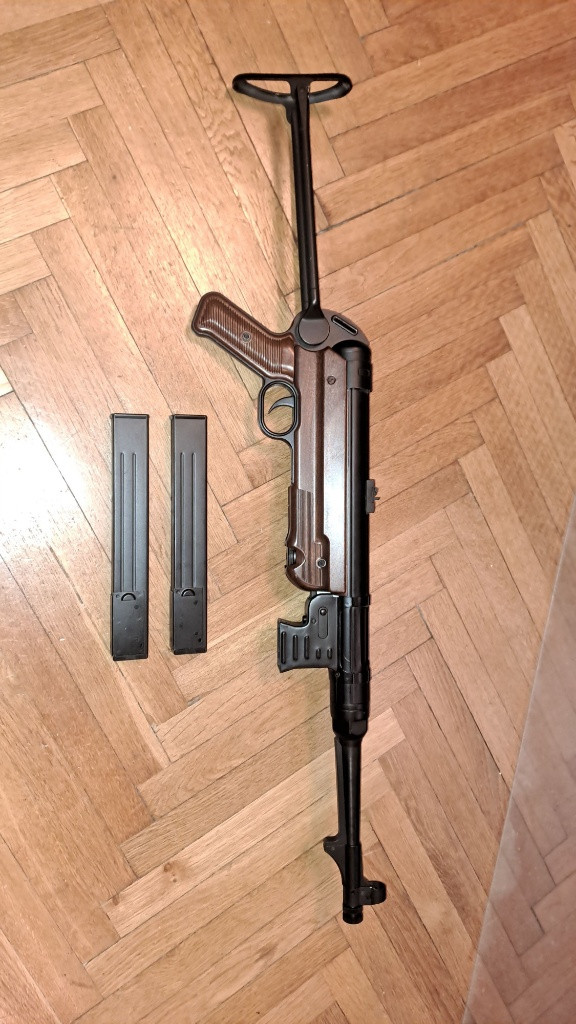 Prodám airsoftovou MP40 od značky AGM, plně funkční, skoro nová, hraná minimálně (3krát na akci, jinak jen párkrát střílení pro zábavu). Součástí jsou 2 zásobníky. Zbraň je v pěkném stavu, má pár malých oděrek ale nic velkého, vše funguje bez problému jak má. Přiložím k ní i základní baterku která postačí na úplný začátek. Ideální pro někoho, kdo chce historickou zbraň do hry nebo sbírky. Osobní předání – kupující přijede. Na ceně jsem ochotný se do určité míry domluvit. Platba na místě nejlépe přesně hotově ale nemám problém ani s převodem. Při koupi obou mých zbraní najednou nemám problém udělat slevu. Pokud projevíte zájem, rád Vám pošlu více fotek zbraně. Cena 4200 kč