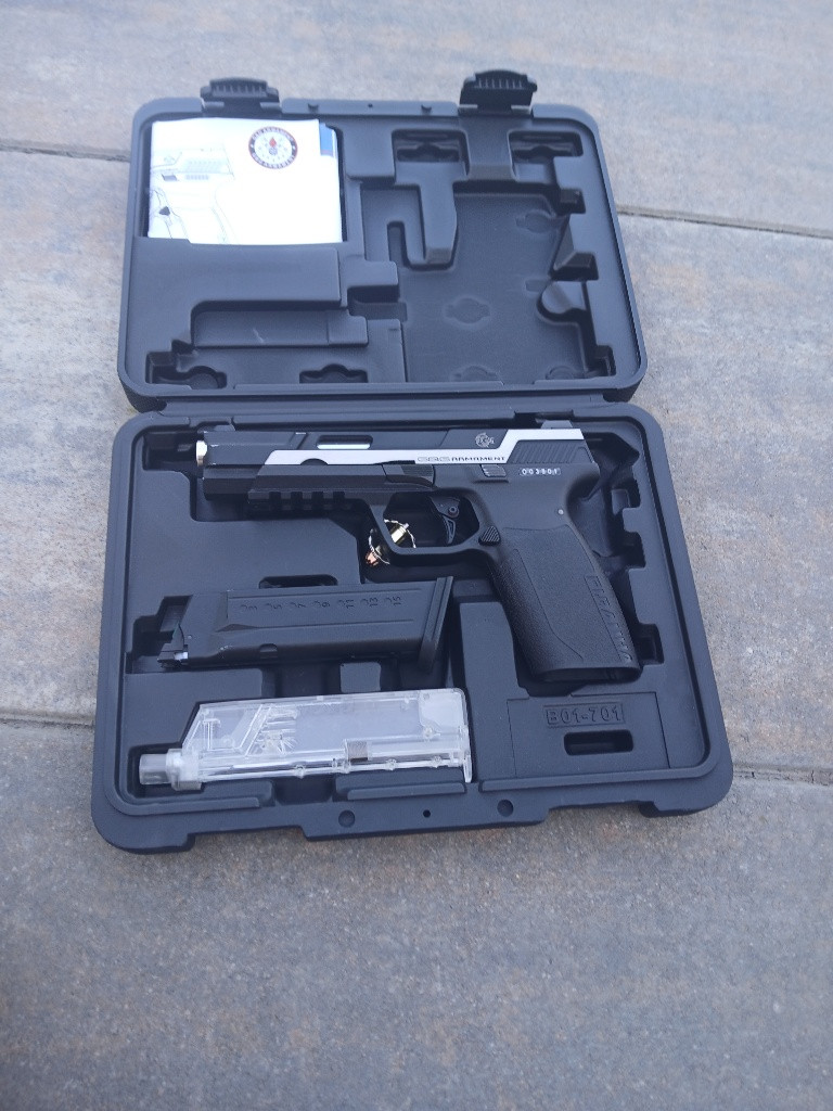 Prodám airsoft pistoli, nová, použitá 4x (nevhodný dárek), plyn, blowback (GBB)-Dual Tone [G&G], koupeno za 3790 Kč. V záruce, součástí je faktura a návod k použití v cz.