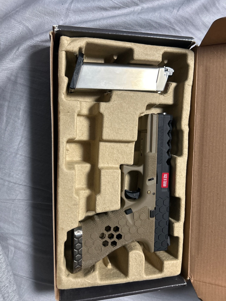 Prodám airsoftovou pistoli AW Custom VX01 HexCut (černá/TAN). Pistole je úplně nová, pouze vybalená, nikdy nepoužitá. Jedná se o doprodej ze zrušeného e-shopu, Moderní design s HexCut závěrem, kvalitní zpracování a silný GBB systém s blowbackem. Ergonomická rukojeť a atraktivní vzhled v TAN barvě. Velmi oblíbený model mezi hráči. Při rychlém jednání sleva možná. Osobní předání okolí Brna nebo zaslání přes Zásilkovnu.