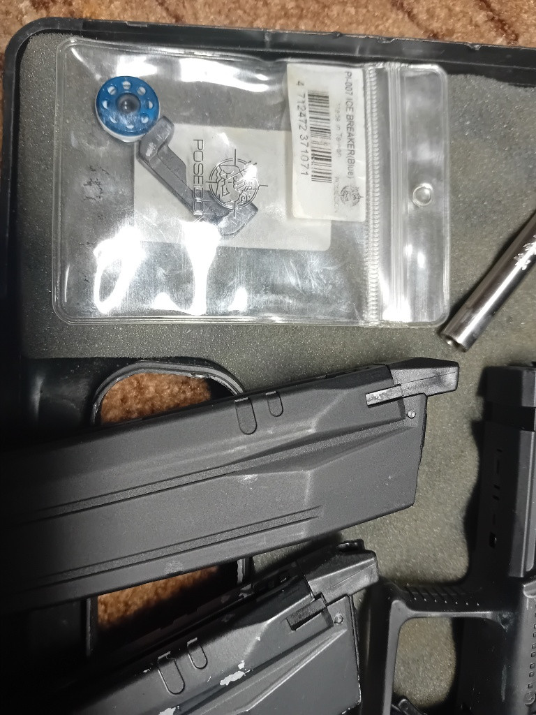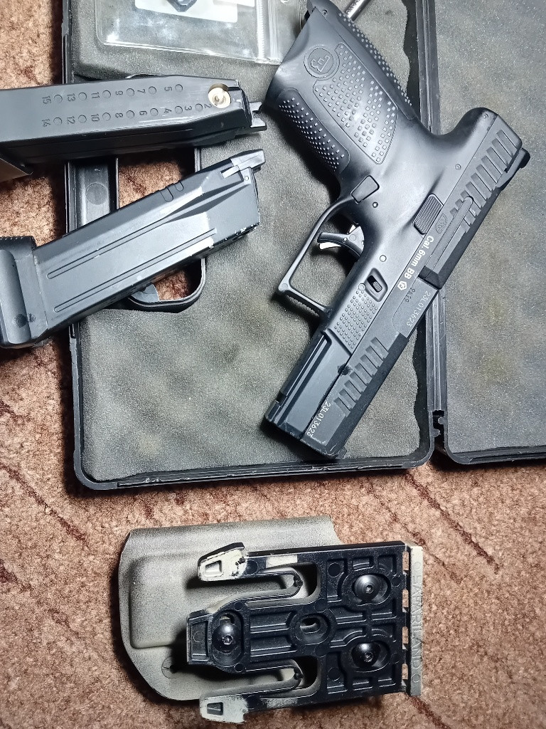Zdravím prodám pistoli cz p-10c, kterou jsem koupil před 1 měsícem (můžu poslat fakturu), prodávám ji z důvodu přechodu na jinou zbraň (cz mi nesedla), plně funkční, jen trochu špinavá a chtěla by namazat, k cz dám i 2ks bombičkových zásobníku, které jsou plně funkční, dále prodávám precizní vnitřní japonskou hlaveň 6,01mm za 350 nová stojí 700 můžu poslat odkaz, hlava pístu ice breaker prodám za 200 nová stála 500 můžu poslat odkaz, oboustranný zachyt zásobníku prodám za 70, v případě koupě více věcí naráz přidám bombicky, NA EMAIL NEREAGUJI!!! Pište přes SMS nebo volejte.