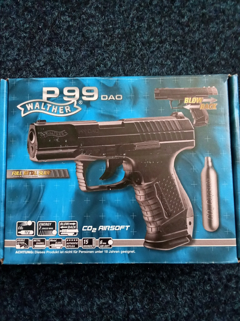 Popis:Airsoft pistole Walther P99 DAO CO2-12g+příslušenství v ceně.