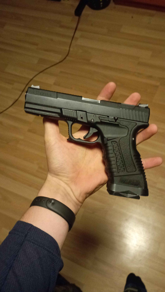 Popis:Airsoft pistole WE G17 – plynová (GBB)