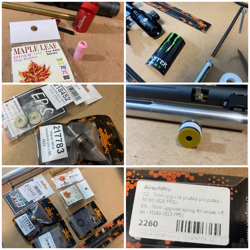 Prodám airsoft pušku, odstřelovačku, sniperku M24 od firmy Snow Wolf. Barva digital camo. Je zde provedem UPgrade. HopUp komora m24 AirsoftPro. Komplet nová vzduchotechnika (válec, píst, trn) válec nerez CNC z jednoho kusu. Pružina M160, nerezová hlava válce AP, Sorbopad hlavy od EpEsu, Maple Leaf přítlačný váleček Omega, Mepale Leaf hop guma Macaron 75. Nový AEG adaptér + těsnění. Výkon zbraně je na 0,48g cca 3,1J. Utěsněno-utišeno. V ceně je zbraň + puškohled v hodnotě 2500,- + dvounožka 1200,- + přidám plničku a popruh. Za příplatek 500kč mohu přidat 1kg kuliček 0,48 Fallens. Na spoustu nových dílů vystříleno pouze asi 50 kuliček při zkoušení a měření. Důvod prodeje, zůstávám věrný AEG. Sniper, sniperka, puška, odstřelovačka, airsoft.
