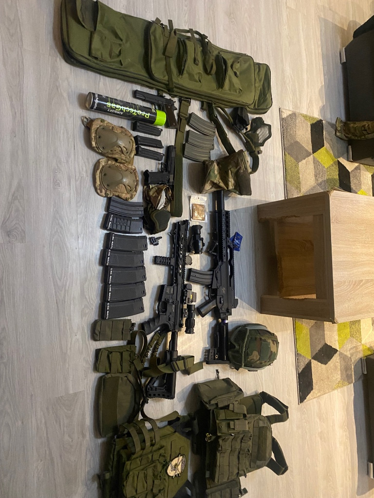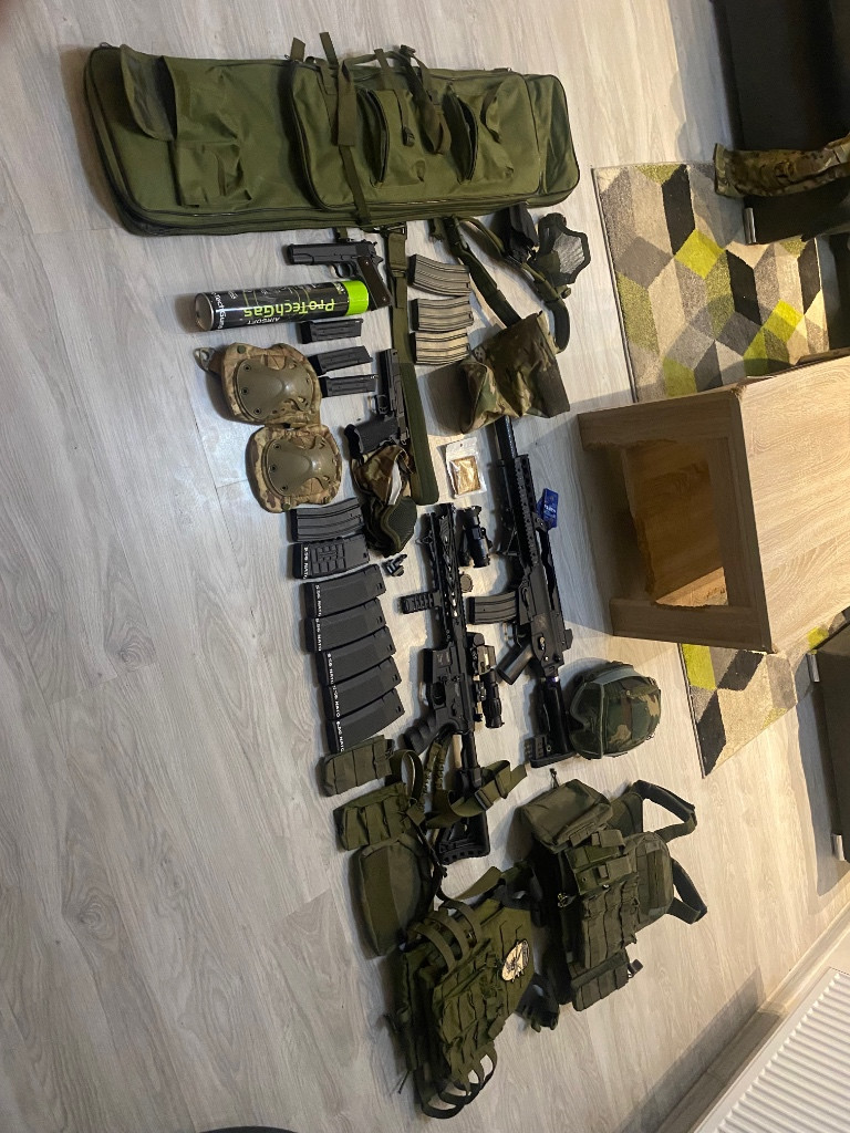 Prodám svou výbavu už ji nevyužiji … G&G predátor v základu osazeny kolimstorem a magniferem plus jeden rezervní kolimator … k tomu 5 tlacaku a jeden tocak.. bez baterky … G36 stará ale funkční v základu … sekundarka hi-capa 3 zásobníky green gas. Přepravní val na krátkou a slouhou zbraň … 2 vesty jedna přijde trosku opravit ale šikovně rice to zvládnou … nejaky set sumek různých druhů ale primárně pro zásobníky AR … přilba s brýlemi chrániče kolen pasek s odhazovakem a pouzdrem na pistoli chrániče obličeje a muzu k tomu přihodit jeste multicam maskáče s taktickým tričkem a vz95 staré maskáče a blůzu