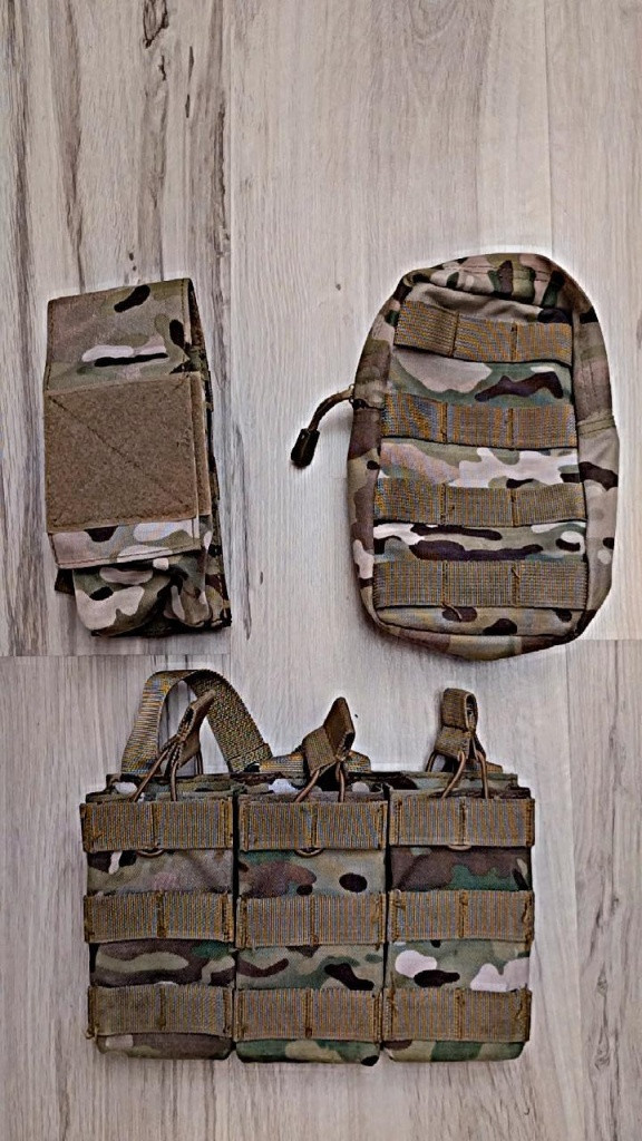 VESTA - 2. gen modulární balistické vesty AAV FSBE, ušita podle vzoru firmy PointBlank AAV (Amphibious Assault Vest) + imitace balistických plátů SUMKA NA ZÁDA - kapsa na camelbag + 2 kapsy a suchac na nášivky 3X SUMKA 5.56 - trojitá sumka na 5.56 zásobníky, molle panely, gumičky UNIVERZÁLNÍ SUMKA - sumka středního rozměru, molle panel SUMKA VYSÍLAČKA - Sumka na vysílačku (lze i na zásobníky) 2X SUMKA COYOTE - dvojitá uzavřena sumka na 5.56 zásobníky... Molle KRYTKA PRED KOLIMÁTOR - Ochranné sklíčko před optiku/kolimátor...sklopné, upevnění na RIS 22mm. V sadě 2 sklíčka (čiré, žluté) Vesta - 1200 Kč Sumka zadní - 350 Kč Sumka zásobníková 3x - 250 Kč Sumka zásobníková coyote 2x - 150 Kč Sumka univerzální - 150 Kč Sumka vysílačka - 100 Kč Nášivky - 25 Kč/kus Sklíčko - 300 Kč Důvod prodeje je, že jsem nastoupil na útvar a nafasoval další věci a nemám moc času na airsoft.