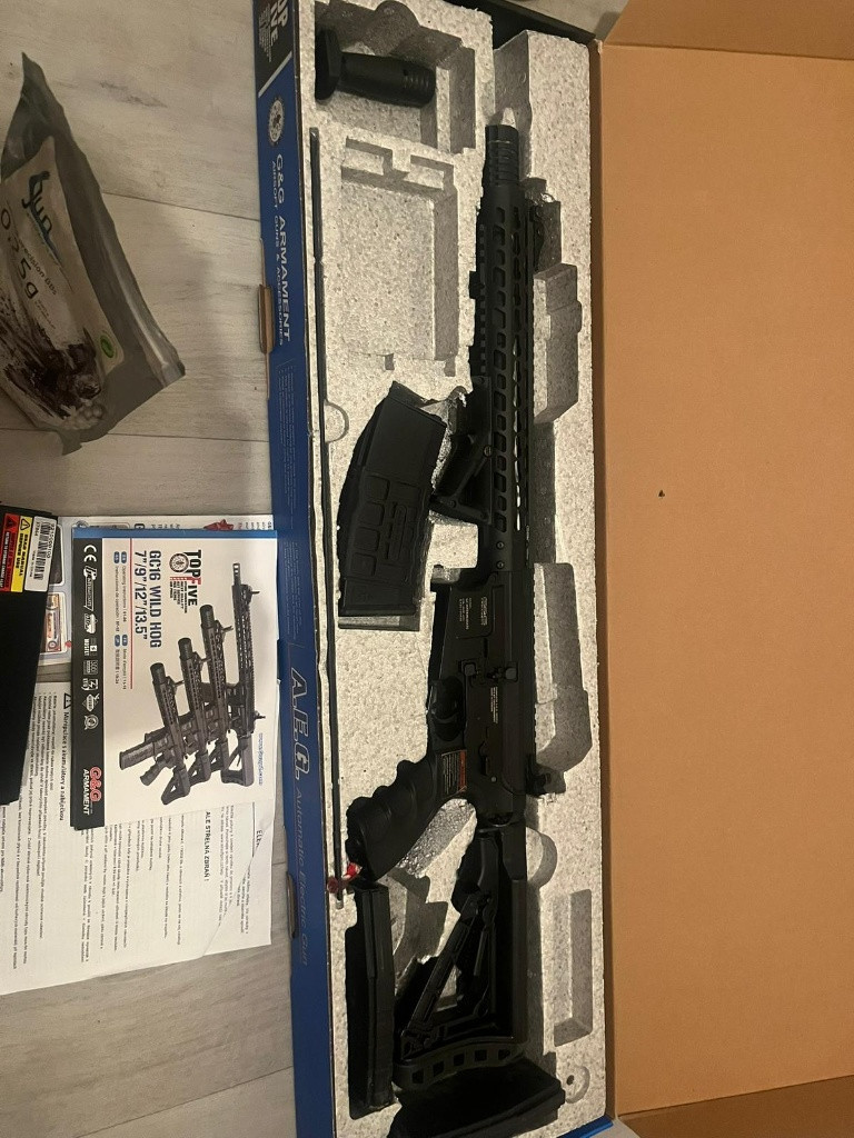 Airsoft zbraň GC16 Wild Hog 12 ", celokov, elekrtonická spoušť, + dva neoriginální zásobníky, kuličky 0,25g, a horizontální rukojeť