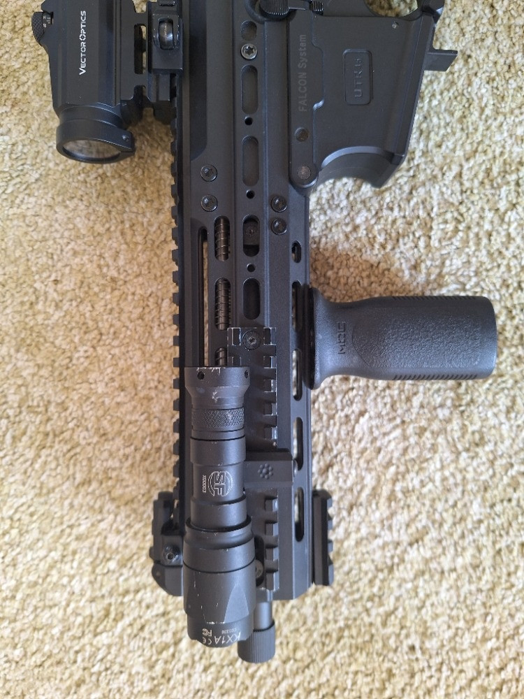 Prodám M917G UTR45 DE. Zbraň je plně funkční, zvládne bez problému výkon do 1,7J. Aktuální výkon je cca 1,4J. I tak, ale střílí bez problému na 50m. Disponuje rychlovýměnou… ke zbrani mohu přibalit další pružiny. Z venku podřená viz. foto. Případně pošlu detailnější fotky. Uvnitř mírný upgrade (vzduchotechnika, hop gumička). V ceně je kolimátor Maveric 2 Vector Optics s nižší a vyšší montáží, gumovou krytkou, plastovou krytkou na skle. Dále grip, svítilna M300 (prostřelené sklíčko – nahrazeno plastovým), 4 zásobníky, plastové originální krytky místo ris, tři kovové lišty a jedna plastová. Jednobodý popruh, pevná mířidla, druhou páku zásobníkové šachty. Cenu za vše bych si představoval 4000. Při rychlém jednání ji nechám za 3800. Kontaktujte mě přes email vladislav.nogol@seznam.cz