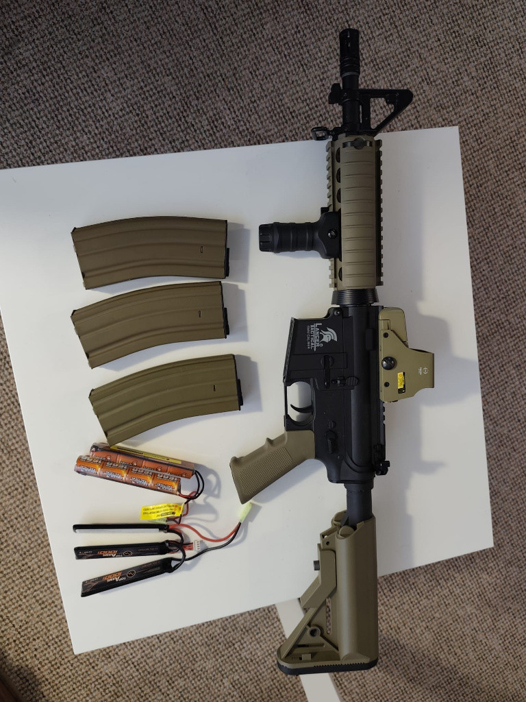 Prodám zbraň na airsoft, kupovaná v dubnu 2025. Stav - jako nová. Nebyla moc využita. Součástí jsou 3 zásobníky (kovové), Akumulátor Li-Po 11,1V 1000mAh, Kolimátor TO551 Theta Optics, Vertikální krátká rukojeť QD. Fakturu k zakoupenému zboží mám, kupované na AirsoftPro.