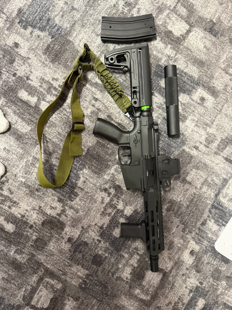 Prodám Airsoftová zbraň M904E Falcon 3.0 ETU [DE] Zbraň je kupovaná na https://www.airsoftmorava.cz/airsoftova-zbran-m904e- falcon-3-0-etu--de/?sznaiid=7630900119776314190 Byla koupená 7.3.2025 byla hraná minimálně přechod na AAP-01. K zbrani nechám kolimátor z aliexpress cena 800 Kč Kovový tlumič Navy Seal 198 x 35mm cena 390 Kč Hlaveň AA precizní vnitřní hlaveň AEG 6,01 - 250mm 670 Kč Popruh s očkem ke zbrani i ručka.