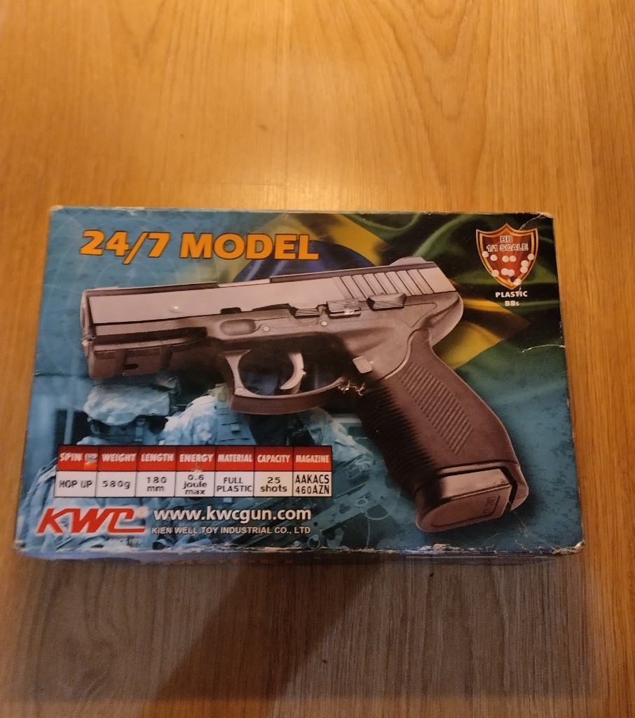 Kvalitní airsoftová pistole od firmy KWC.Tělo ABS plast, vnitřní díly ABS plast a kov,zásobník na 25 kuliček(doporučuji kuličky 0,25 gramů),lehce rozebíratelná,energie zhruba 0,6J,kvalitní zpracování a daleký dostřel(sám jsem byl překvapen),téměř nulová údržba a spolehlivost.Celé balení obsahuje pistoli se zásobníkem, příbalový manuál,rychloplničku a vzor kuliček(průměr 6 mm).(800 kč i s poštovným)