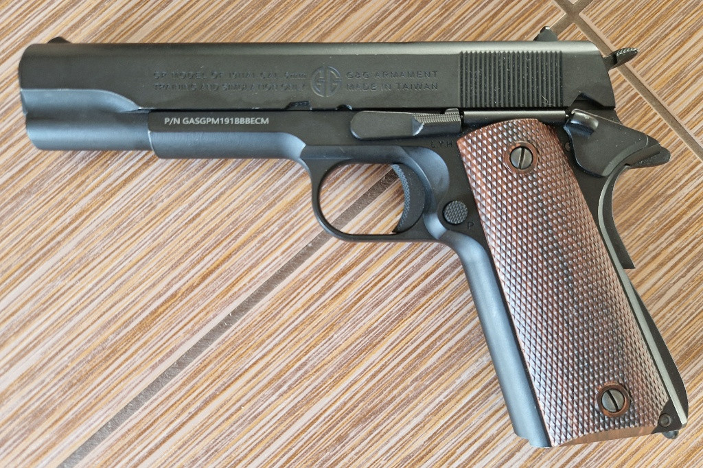 Popis:Airsoftová pistole GPM1911, celokov, plyn blowback (GBB) - černá