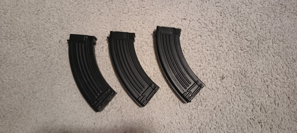 prodam airsoftovou zbran ak47 cyma cm 0.28a s gripem a boxem baterka/laser + akumulator + nabíječka + 4 zasobníky točné
