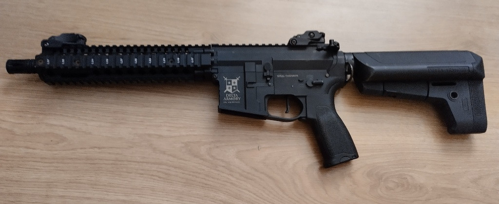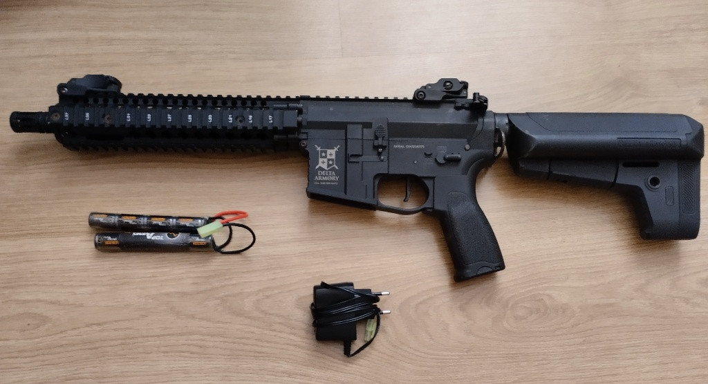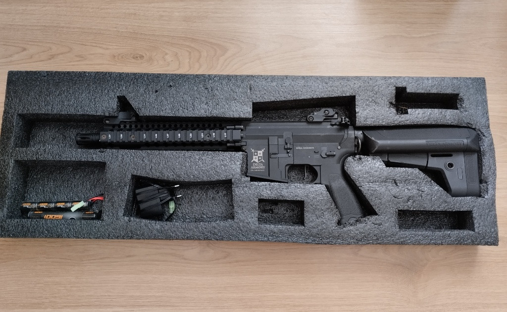 Prodám elektrickou airsoftovou zbraň.Excelentní zpracování od známé airsoftové značky Delta Armory.Zbraň má vysunovací pažbu z odolného ABS plastu,vnitřní díly z kovu a rovnou spoušť,která zbrani dodává neobvyklý vzhled.Je vhodná hlavně pro začínající s airsoftem,ale zahrají si s ní i pokročilí!Má energii 1,4 Joule a vynikající dostřel.Zbraň má standartní zelený konektor. Obsah balení: Airsoftová zbraň AR15 MK18 BRAVO Akumulátor 9.6 V Nabíječka na akumulátor.