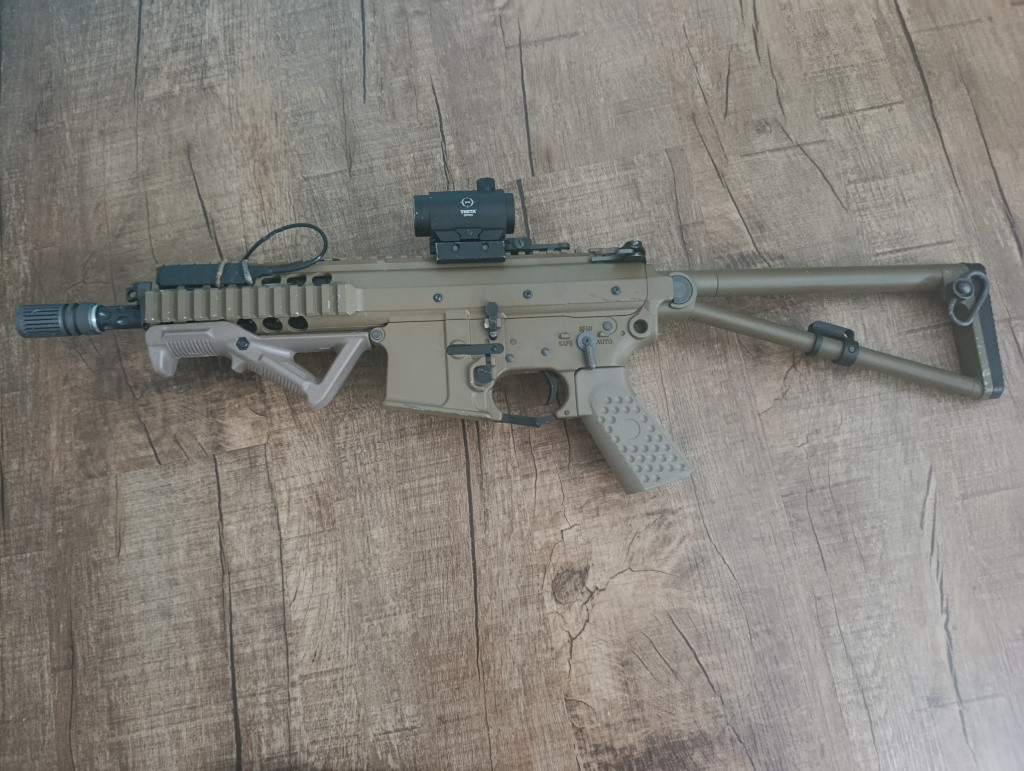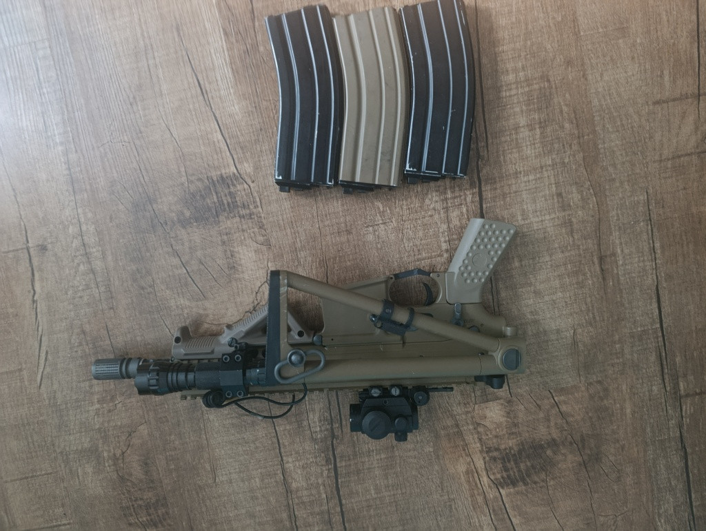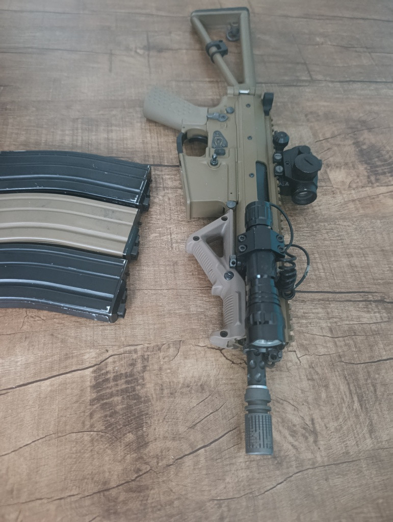 Mam ji teprve rok a byl jsem s ni jen na 2 akcích. Původní cena byla 8500 (zbraň+zásobník) A ted prodavam zbraň+ 3 zásobníky + kolimator + baterka + ručka + 1green gas 600ml.