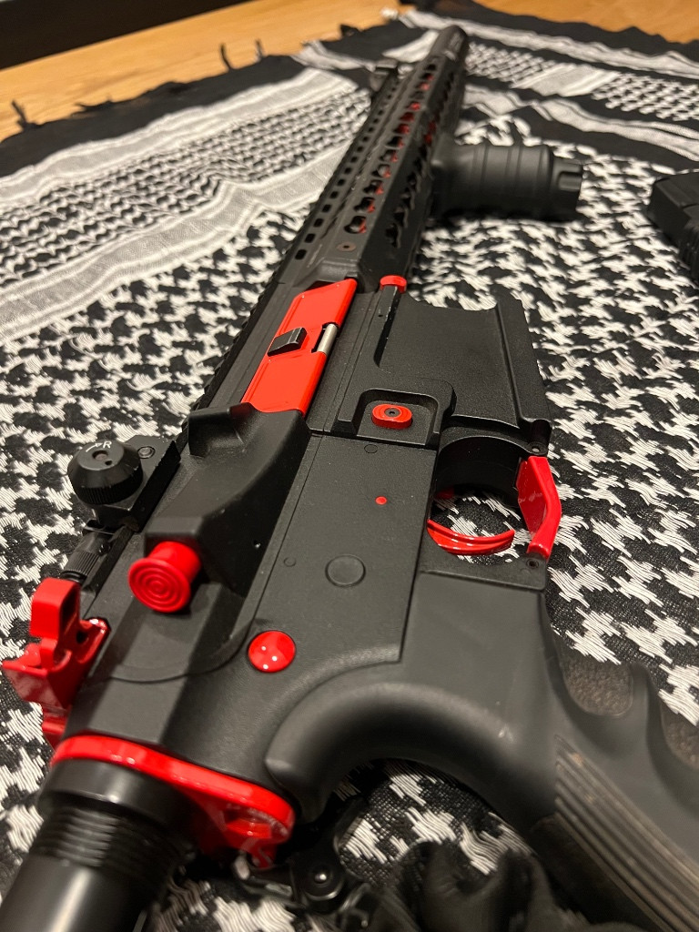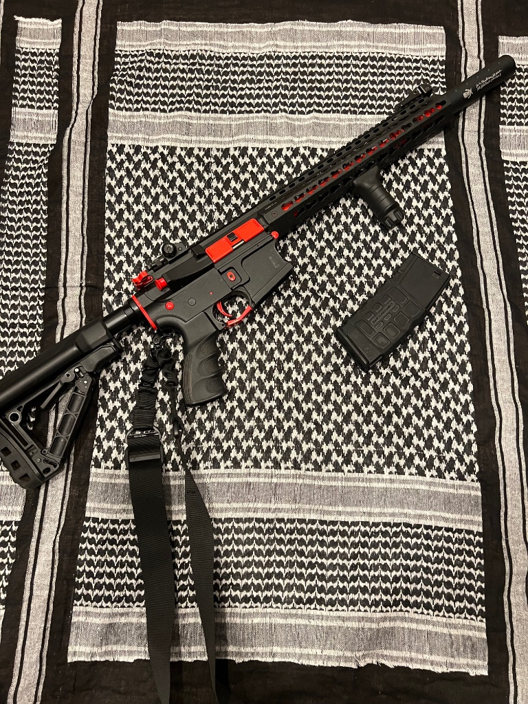 Airsoftová zbraň CM16 SRXL Red Edition, Sportline, černá.