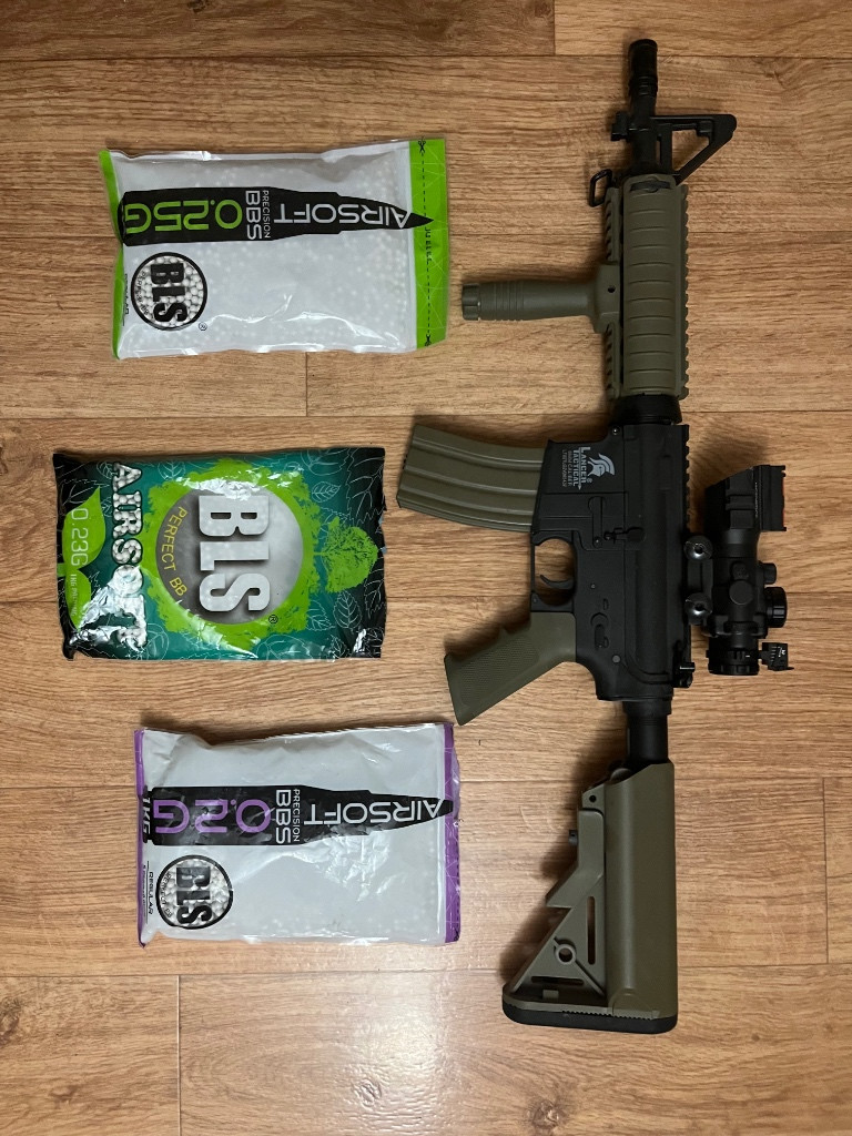 Airsoftová zbraň M4 CQBR Sportline BI-TON (Gen.2) - černo- TAN Jeden zaměřovač - Puškohled Rhino 4X32 Druhý zaměřovač - obyčejné hledí Kuličky - 3 balení (jedno téměř plně dvě polo-plné) Síla zbraně - Pružina byla pro větší výkonnost zbraně vyměněna, síla po výměně pružiny činí zhruba 1,6J (předchozí pružina o síle 1,4J patří k balení) Další příslušenství (v ceně) - taktická rukojeť, originální krabice na přenos zbraně, chrániče na hlaveň pro lepší úchyt a hlavně ochranu hlavně, nabíječka + baterie (umístění v pažbě), kovový točný zásobník na 300 ran, kuličky a plnička na kuličky Parametry: Režim střelby- Jednotlivě i dávka Princip funkce- Elektrická Úsťová rychlost - 120 m/s (394 FPS) Teoretický dostřel- 54 m Délka- 669 / 749 mm Hmotnost- přibližně 2100g PRO DALŠÍ INFO: E-mail toncerjirka@gmail.com nebo tel. 731 090 011 INZERÁT JE ODESLÁN Z ČEBÍNA NE DRÁSOVA. PRO BLIŽŠÍ INFO PIŠTE NA MAIL