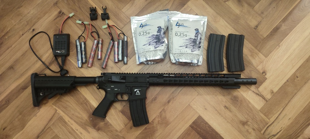 Prodán airsoft M4 AEG od firmy E&C ve zbrani je m130 pružina. Prodavám vše co je na fotce 4x beterie 2x Pitlík kuliček 3x zásobník točný jediné co není součástí je tlumič na zbrani místo něho bude původní kompenzátor v případě zájmu volejte nebo pište na číslo 732442660 na email moc nechodím. Pouze osobní předání Jičín nebo Mladá Boleslav případně mohu kousek dovést ale dál jak 5-10km nejedu
