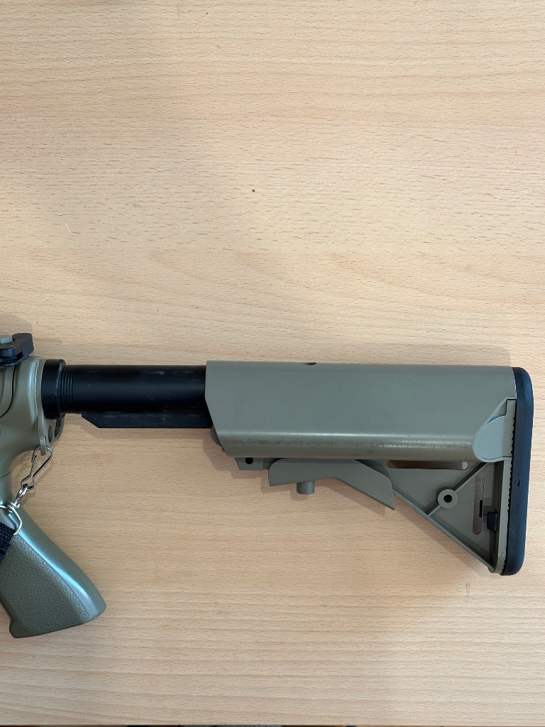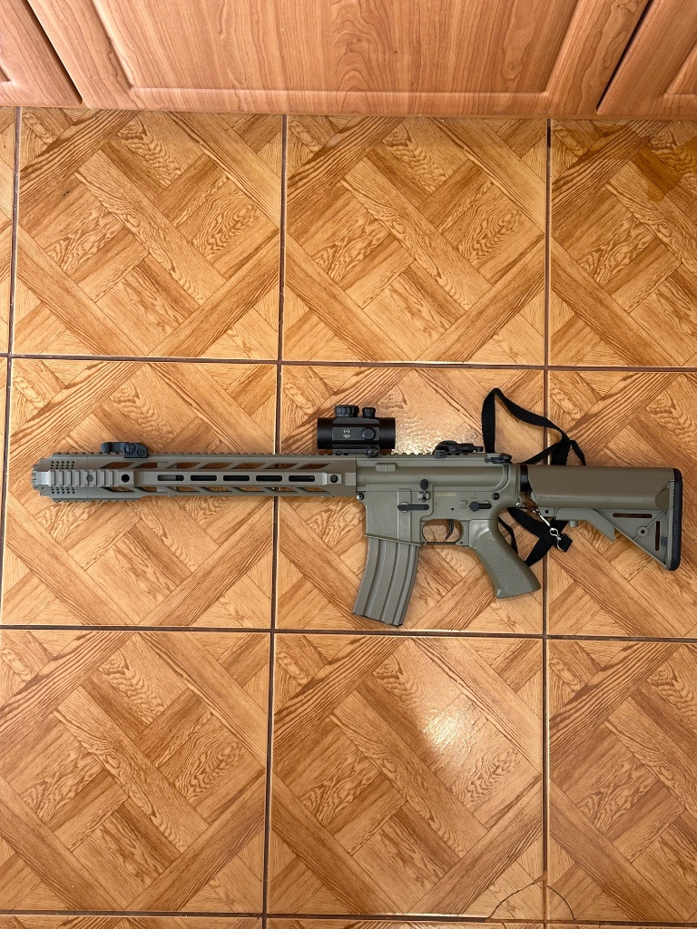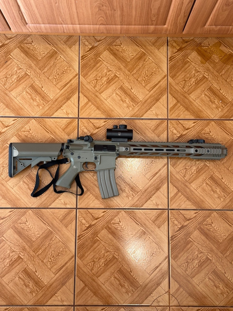Prodám elektrickou Airsoftovou zbraň M4 Salient Arms s následujícími parametry: 420fps (128m/s) Zesílená nylonová hlava válce a pístu Nylonový trn pružiny Ocelová ozubená kola Kovový gearbox v.2 Akumulátor 8.4V 1100mAh Zbraň disponuje nastavitelným hop-up systémem který je aktuálně nastaven k dokonalosti, zbraň disponuje skvělou přesností a dostřelem, díky točnému zásobníku na 300BB je ideální na delší přestřelky a díky nastavitelné délce pažby v pěti různých polohách je ideální pro dokonalé přizpůsobení přímo Vám. Zbraň vždy pravidelně udržována. PLNĚ FUNKČNÍ Součástí prodeje je: Zbraň M4 Akumulátor 8.4V 1100mAh Nabíječka Točný zásobník s kap. 300BB Popruh na zbraň Kolimátor Theta Optics 1x30 (červená tečka) Není součástí prodeje, v případě zájmu i s kolimátorem +499kč