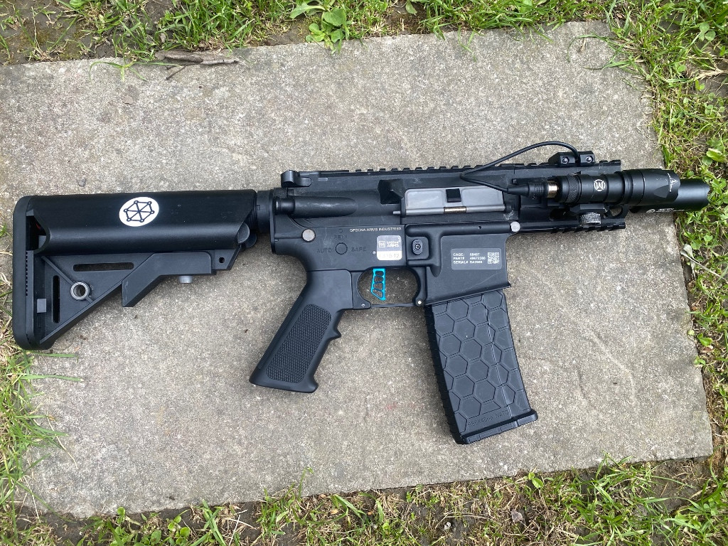 Dobrý den, prodám airsoftovou zbraň specna arms rra & si sa- e17 edge™ Původní cena: 6.293,- Na zbrani mnoho úprav v celkové hodnotě přesahující 3.500,- Kč Zbraň je přizpůsobená především na CQB, kde nemá konkurenci. Veškeré vaše dotazy rád zodpovím po telefonu či SMS. Zbraň prodávám VČETNĚ nainstalovaného příslušenství a BATERIE (Nuprol Lipo 7.4v, 2600mah, 20c, Nunchuck) V případě rychlého a slušného jednání jsem ochoten o ceně lehce jednat.