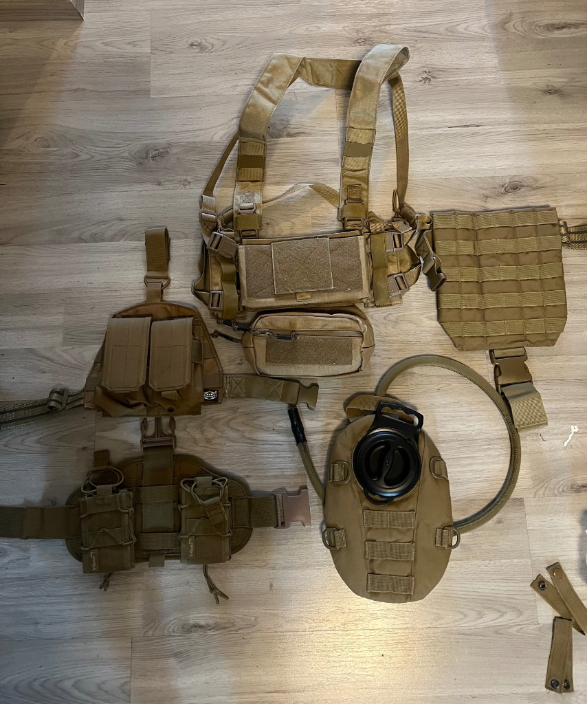 Čepice 100kc Condor stehenní chránič -250kc Strike systém maska s lícní vycpavkou-100kc Strike system maska 100kc Univerzální pouzdro cytac-500kc Viper pouzdro-400kc Opasek MFH-200kc (maly k tomu zdarma) Brýle ess (vytrhany militan po stranách )-300kc Stehenní panel se sumkami viper-400kc Stehenní panel se sumkami mfh-200kc Stehenní panel miltec-200kc Conquer chestrig-500kc Camel bag-400kc Viper 1200kc Viper DUMP BAG 300kc MFH sumka s kapsy-200kc Modulární hydratační systém 8fields-300kc Kalhoty a UBACS Combat G2-1500kc